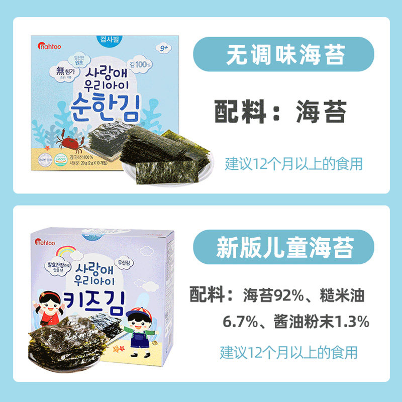 拿嘟nahtoo那都儿童无调味无酸海苔片拌饭料零辅食紫菜韩国进口