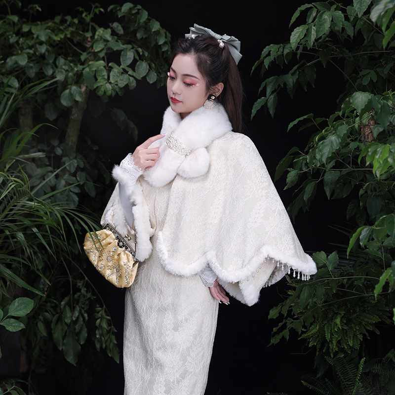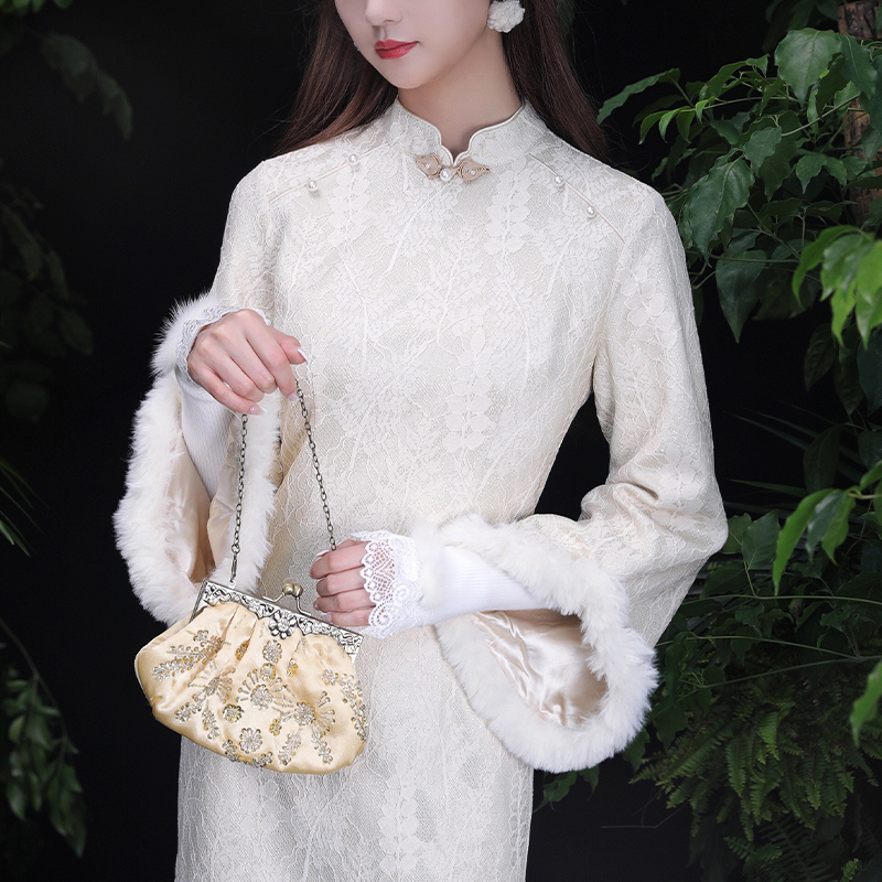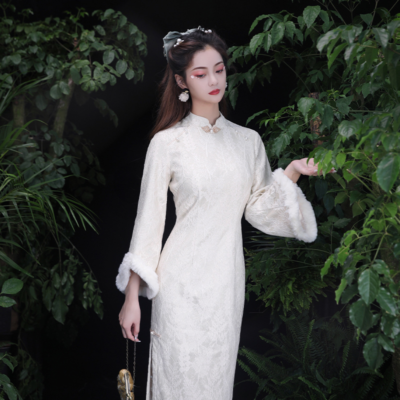 槿爷云麦令2021年秋季新款毛绒袖中式日常年轻款改良旗袍连衣裙女