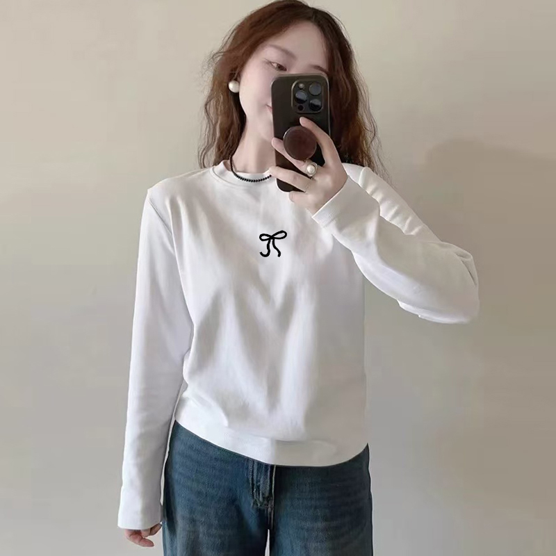 外穿白色欧货宽松圆领上衣长袖t恤女新款休闲简约打底衫百搭显瘦