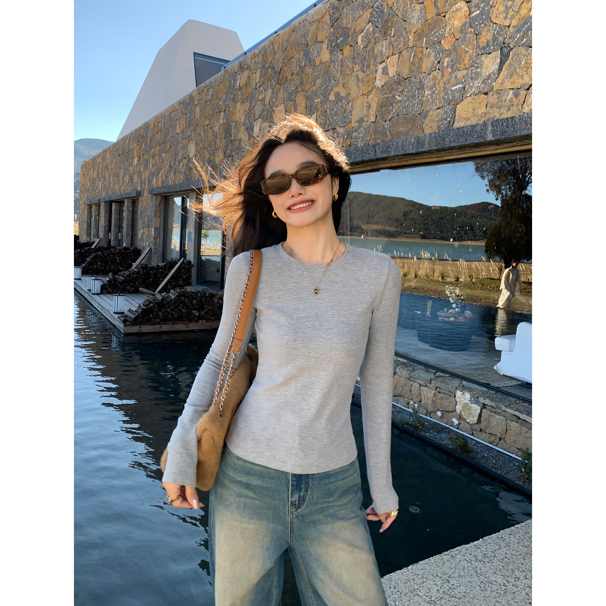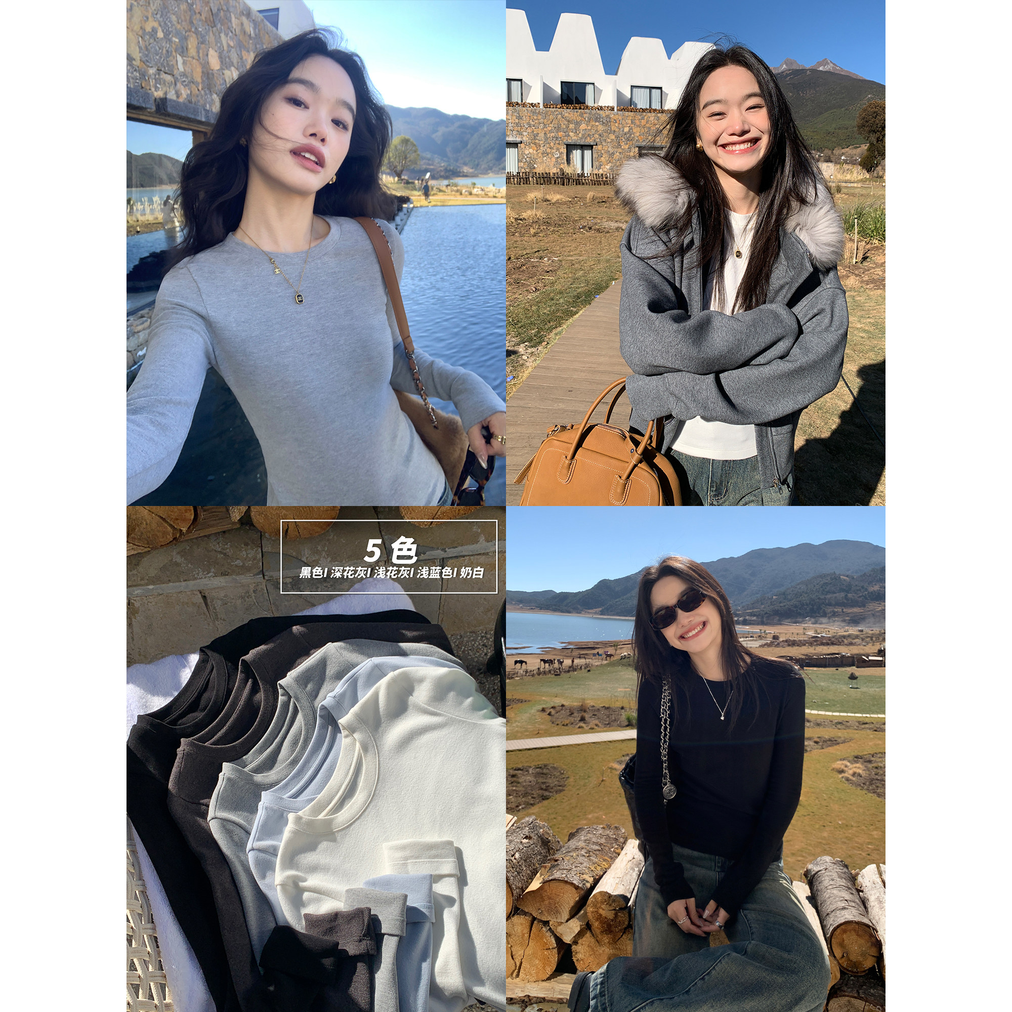 pusumede 五色可选 基础款长袖t恤女圆领修身内搭针织打底衫上衣