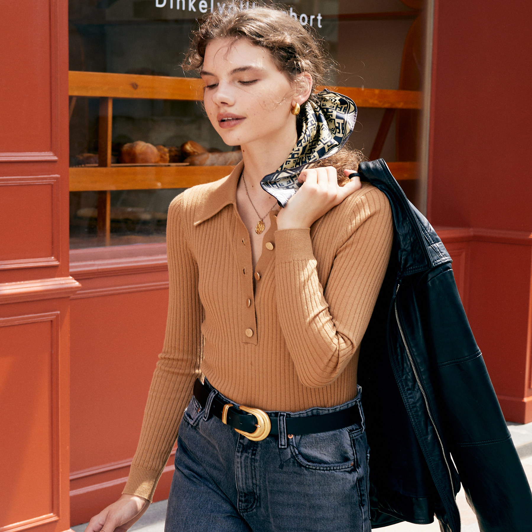 羊毛针织衫女2025秋冬新款毛衣polo领内搭修身开衫打底小香风上衣