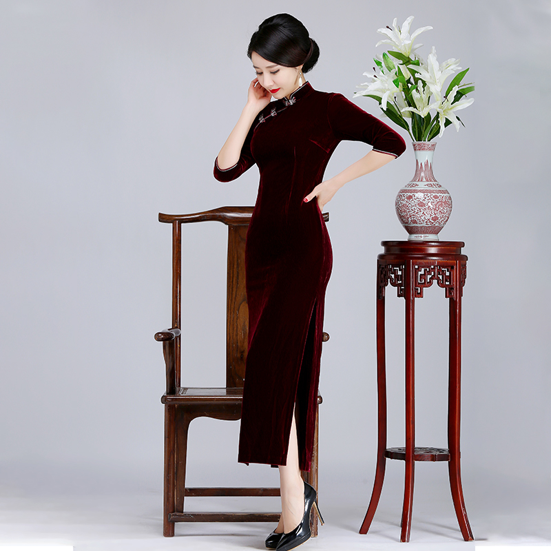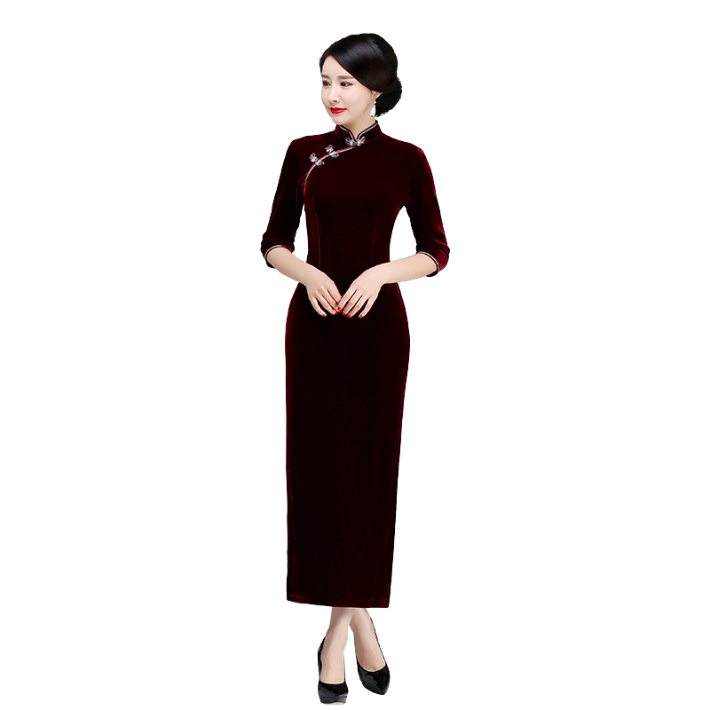 2024新款妈妈走秀金丝绒旗袍高贵