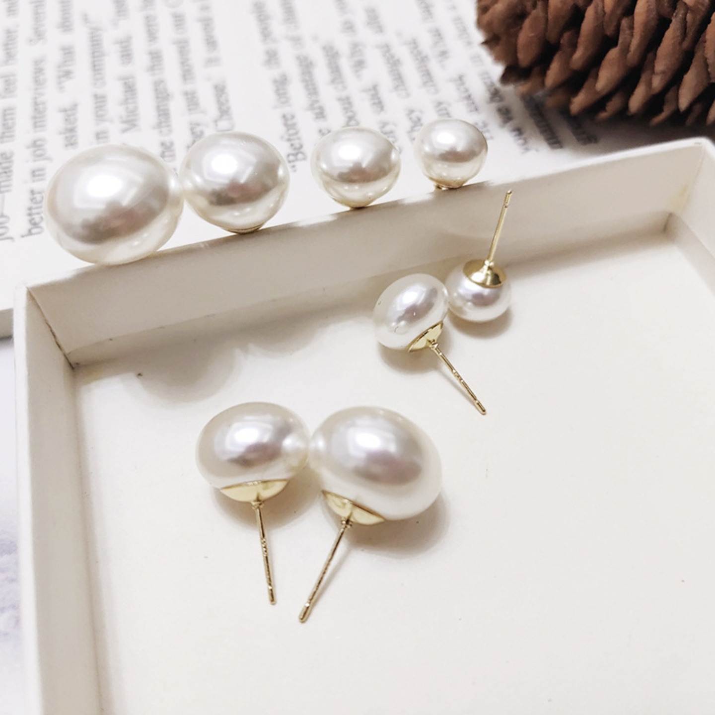 仙贤遥新款馒头扁圆珍珠耳钉女复古耳环2025新款气质小众百搭耳饰