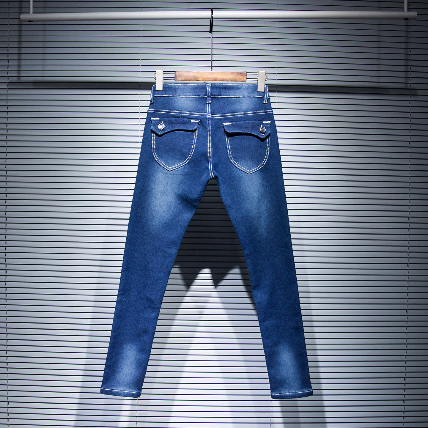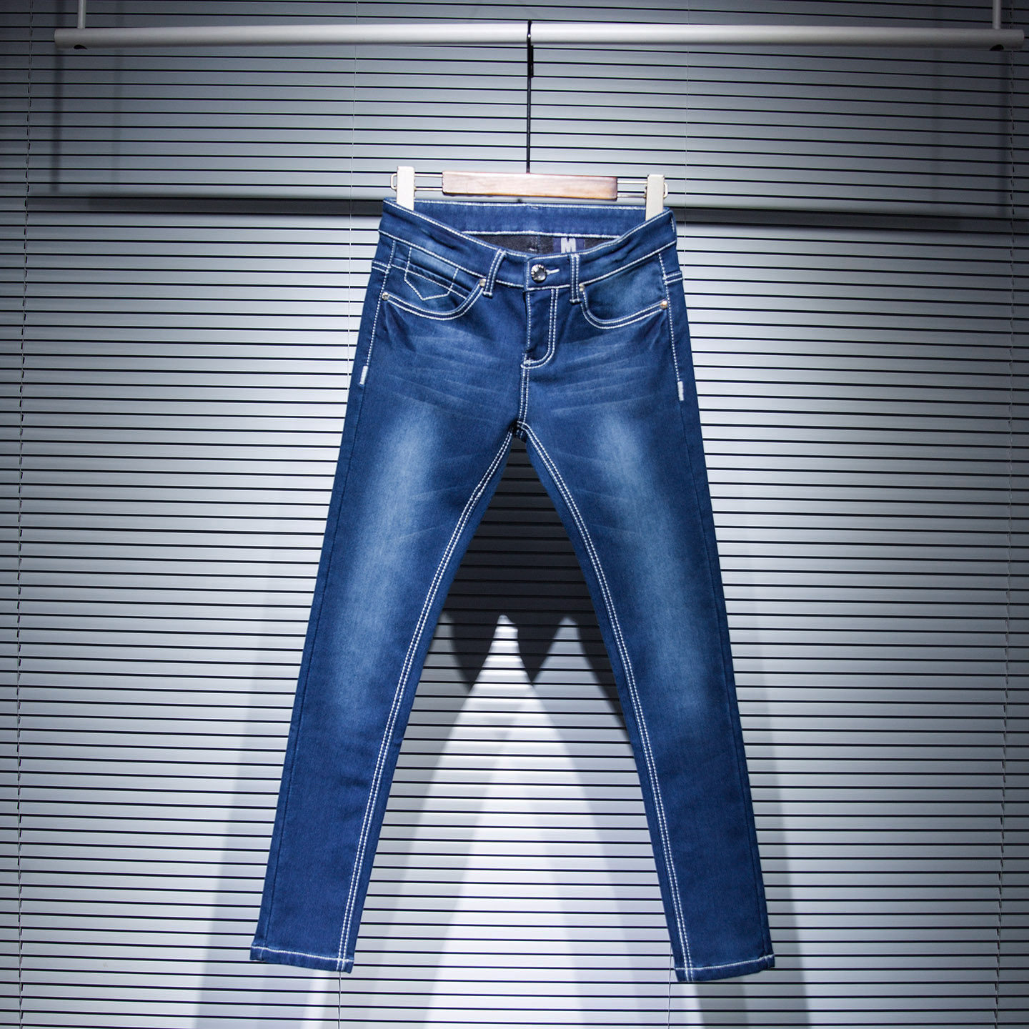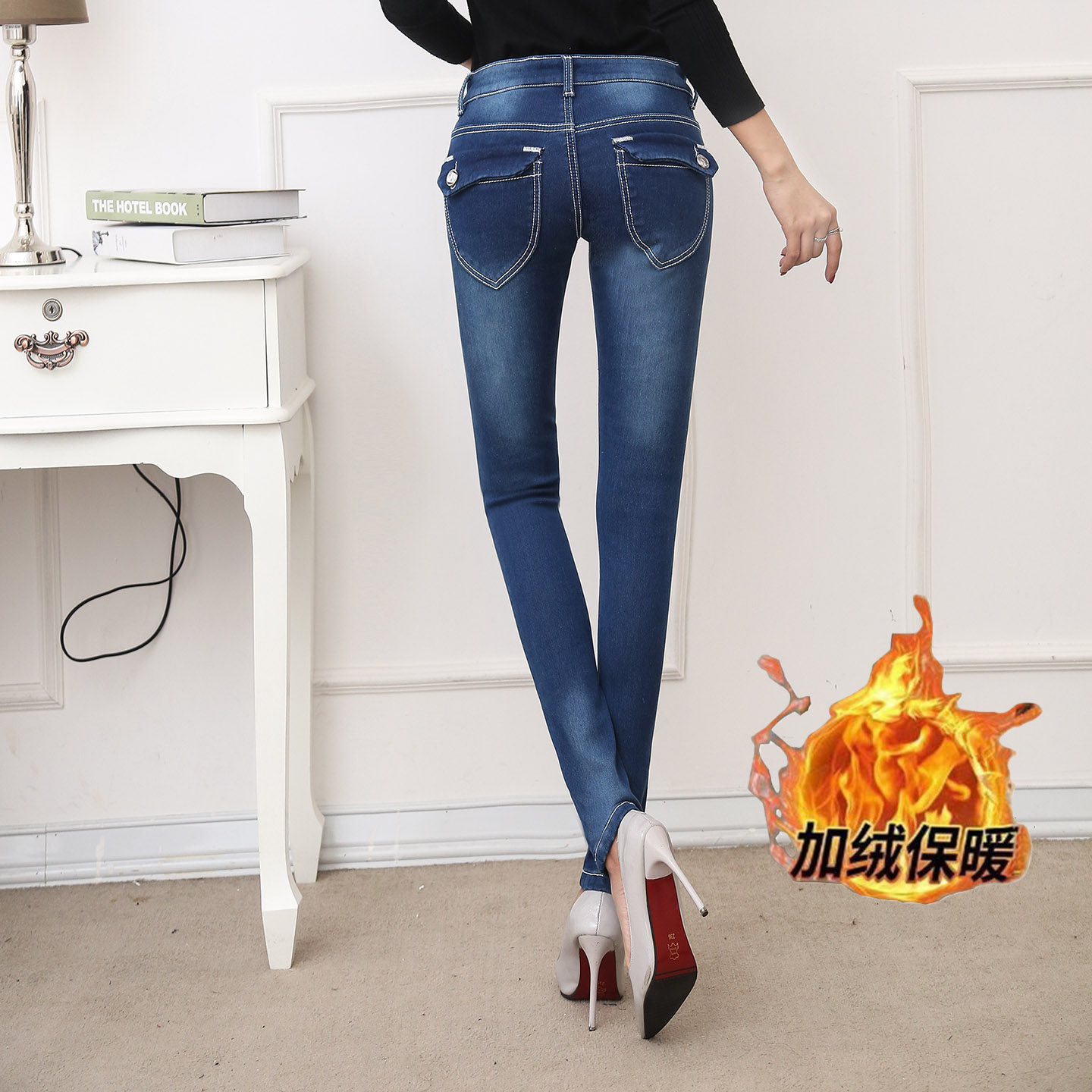 加绒欧美牛仔裤修身女装显瘦铅笔弹力中低腰新款紧身长裤小脚裤子