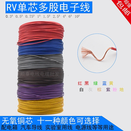 金环球电线RV0.3/0.5/0.75/1平方单芯多股铜芯软线汽车导线电子线
