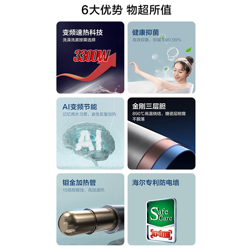 海尔电热水器电家用100升大容量储水式即热速热一级节能洗澡淋浴
