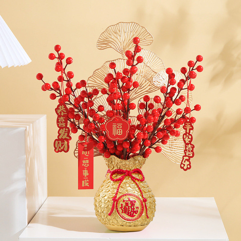 福袋干花摆件花瓶客厅插花麦穗钱袋大麦花束装饰品轻奢高档花瓶