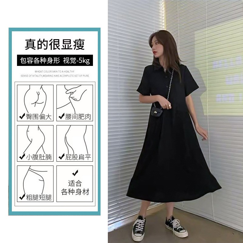 特大码女装200斤胖mm夏季法式时尚收腰显瘦翻领中长款短袖连衣裙