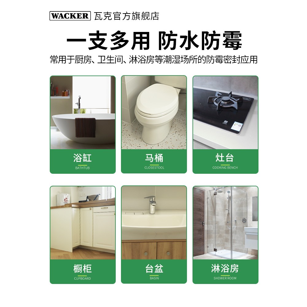 德国瓦克DA plus防水防霉厨卫玻璃胶强力透明美容胶密封胶白色