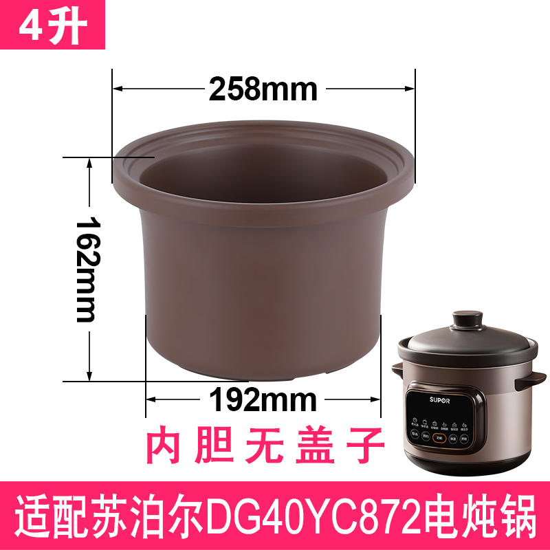 适配苏泊尔DG40YC872/DG50YC872电炖锅4升5L紫砂汤锅内胆盖子配件