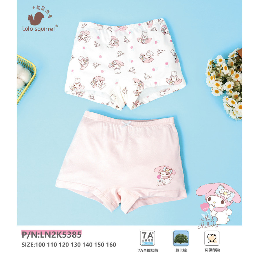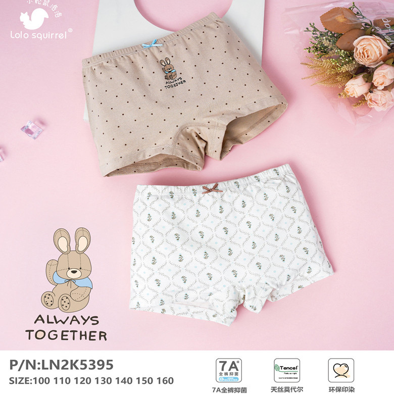 小松鼠洛洛儿童内裤女童宝宝纯棉莫代尔高品质平角四角裤2条装
