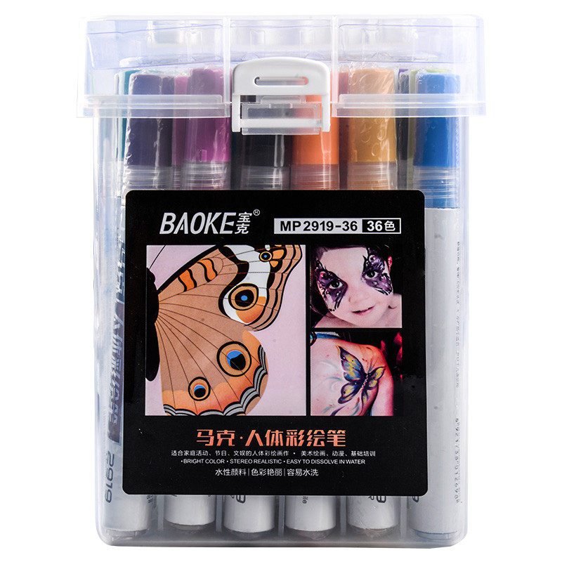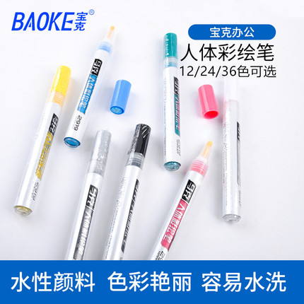 宝克2919人体彩绘笔画脸部皮肤涂鸦绘画36色元旦圣诞节主播pk可水洗颜料水性可擦马克笔儿童水溶性球迷万圣节