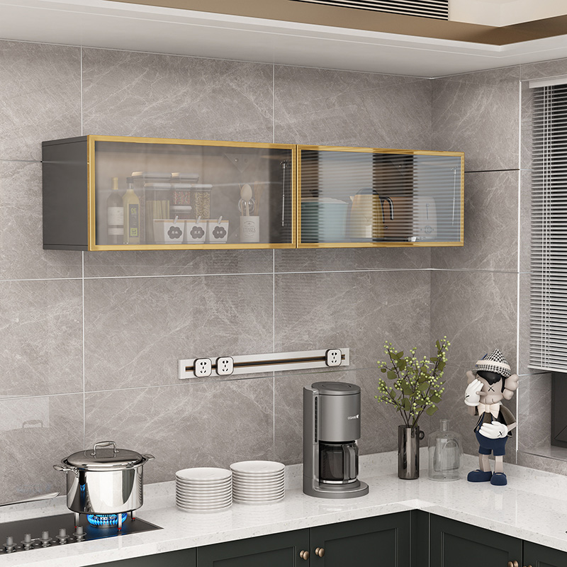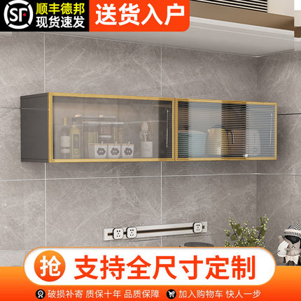 实木厨房玻璃吊柜墙壁柜壁挂橱柜置物架上翻玻璃门吊柜置物柜顶柜