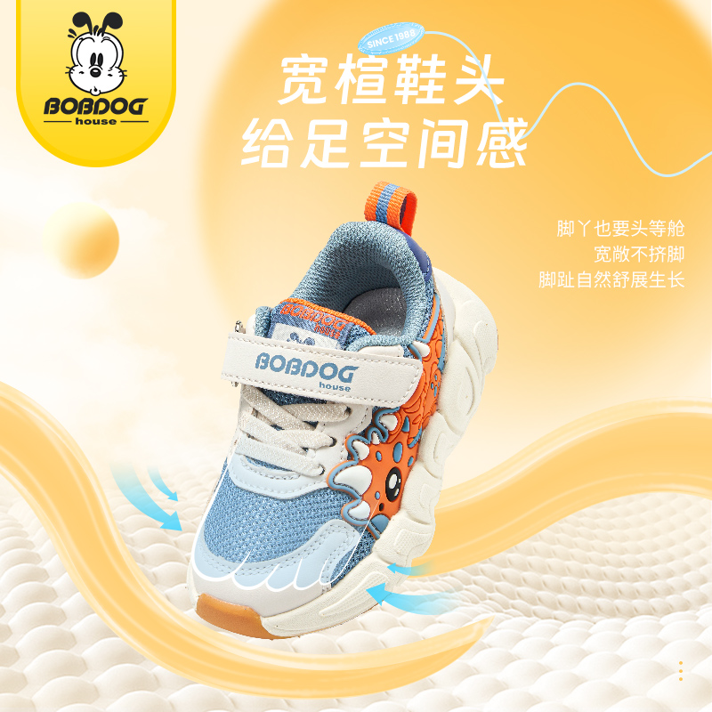 巴布豆童鞋2024款小童恐龙春秋季新款男童儿童鞋子女童宝宝运动鞋