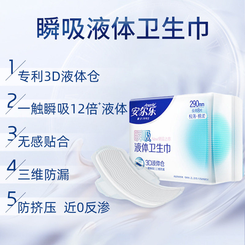 安尔乐液体卫生巾极薄纯棉柔瞬吸防漏透气姨妈巾女日夜用官方正品