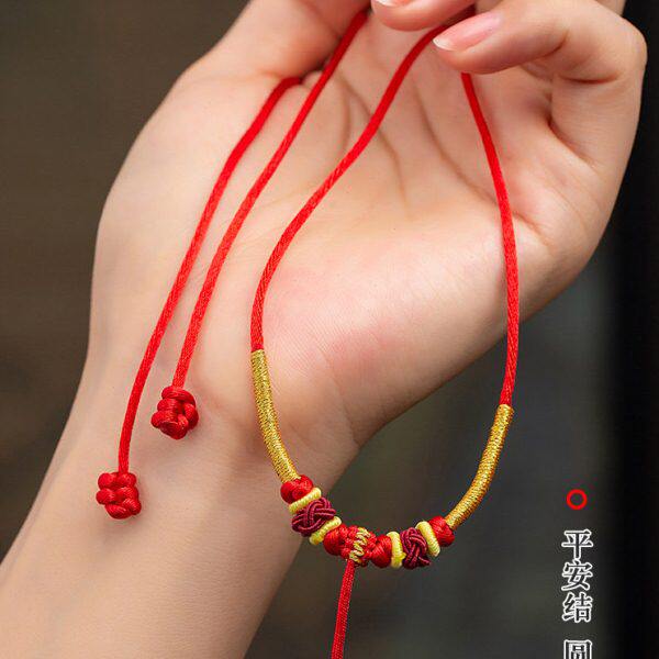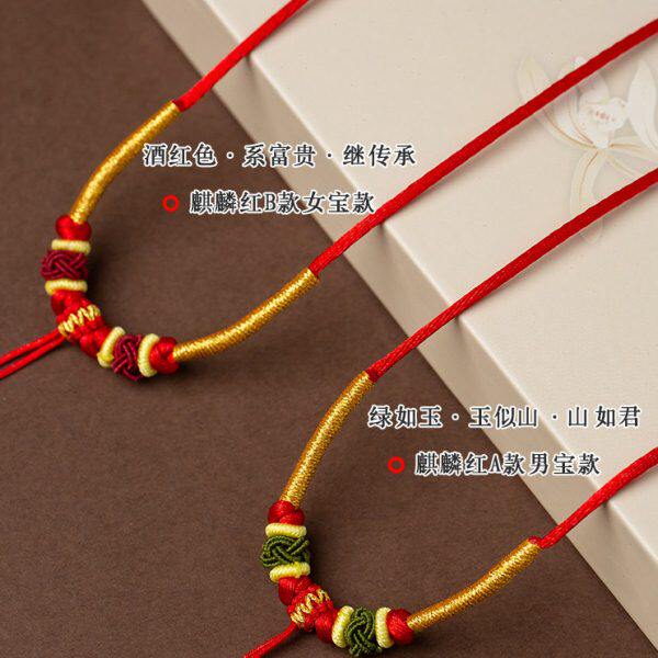 儿童平安长命锁专用吊坠红绳小孩银项圈婴儿银锁挂绳手工编绳宝宝