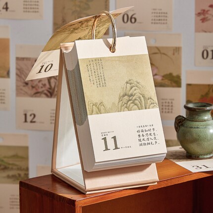 古诗画日历2026年新款古诗词台历中国风山水画手撕翻页月历年历