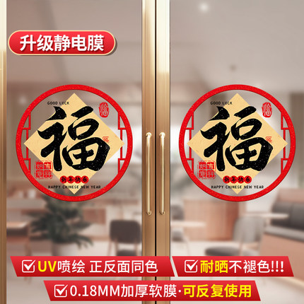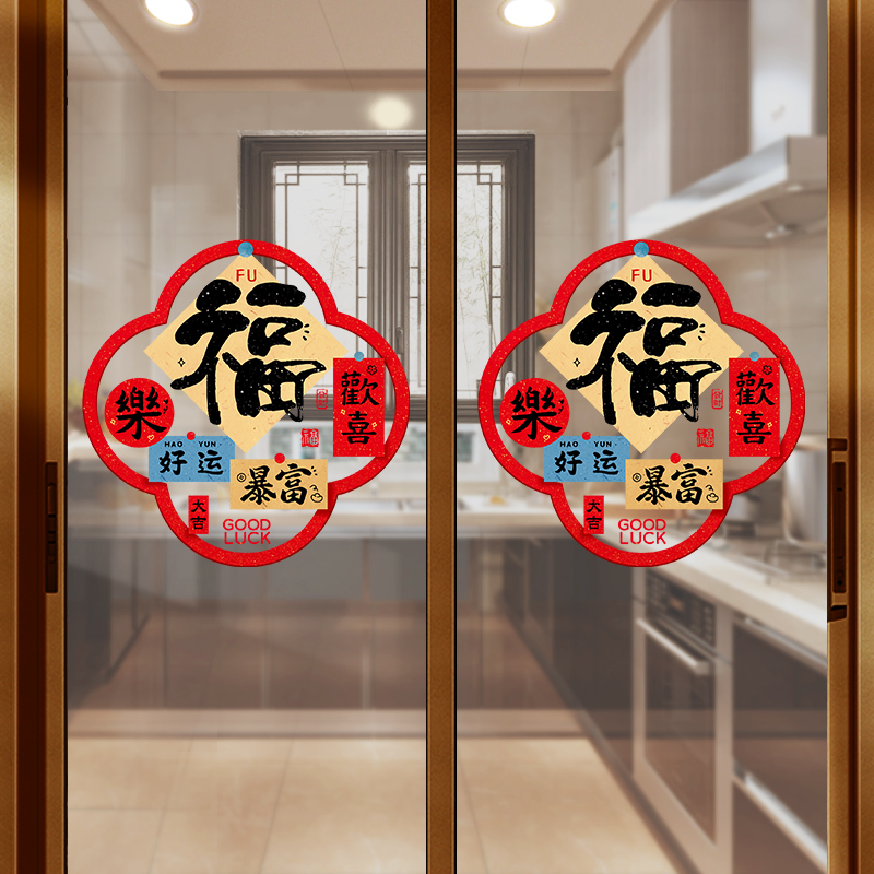 中式福字窗花静电墙贴2026新年马年春节过年创意门贴年画玻璃贴纸