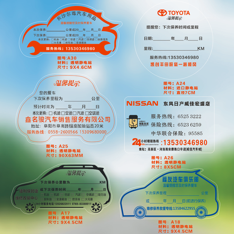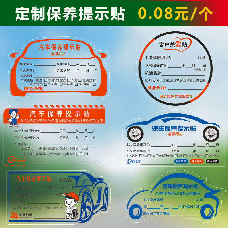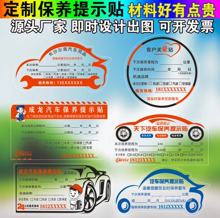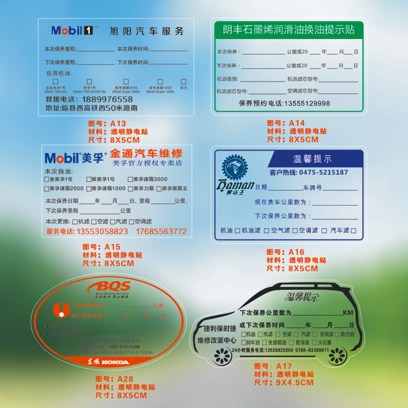 保养提示贴汽车机油静电贴维修提醒卡订做记录吊牌汽修厂标签贴纸