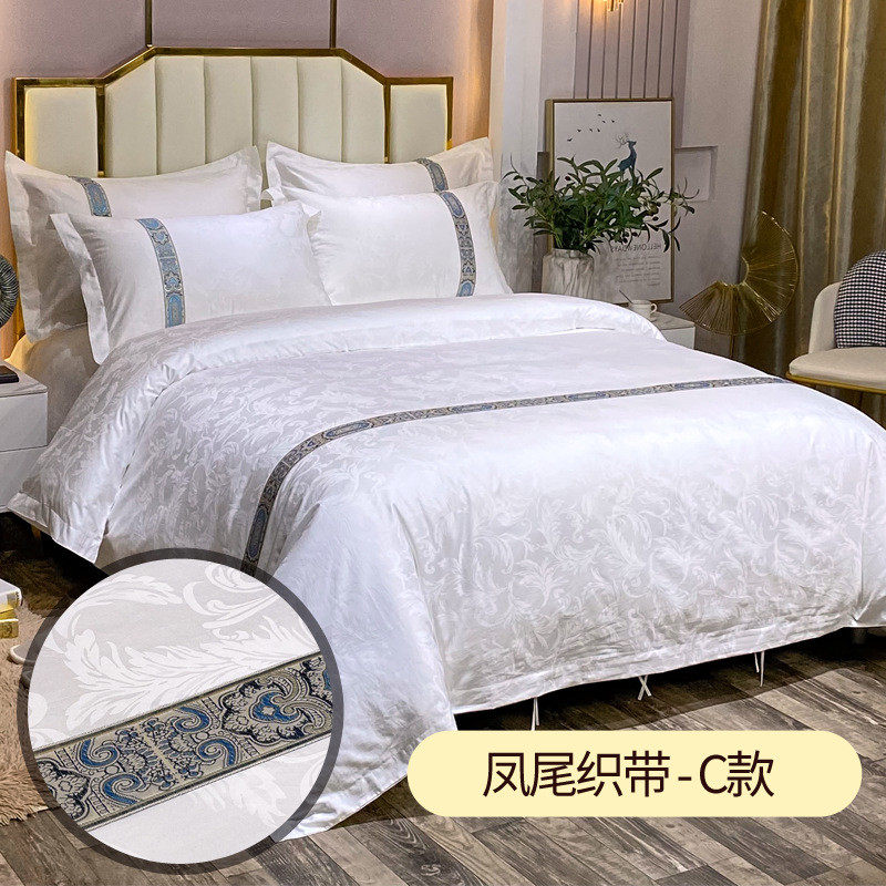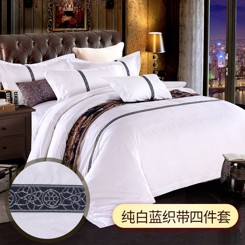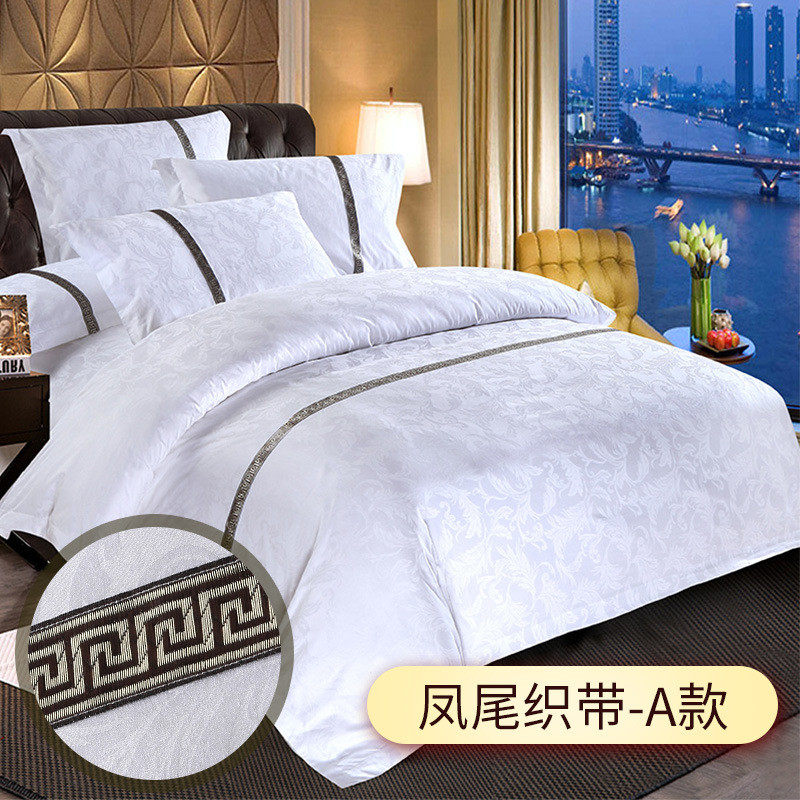 星级酒店布草全棉床上用品四件套宾馆民宿白色提花贡缎床单被套枕