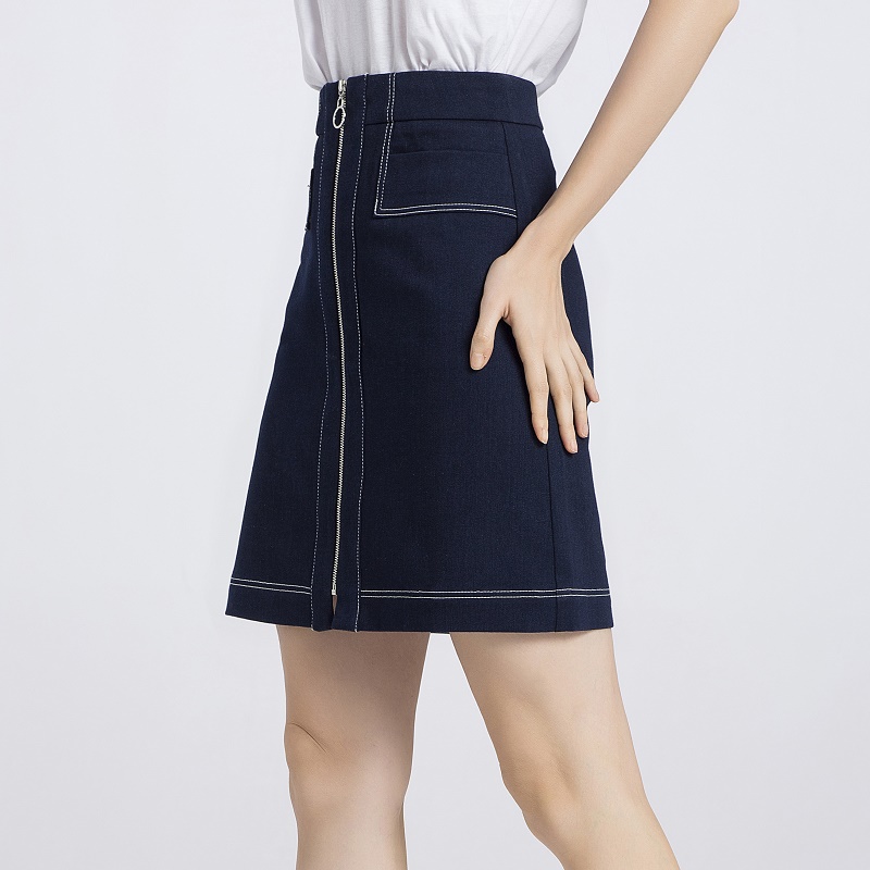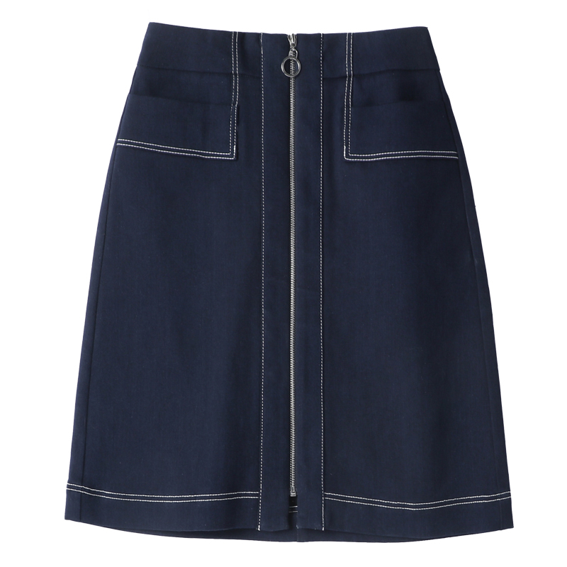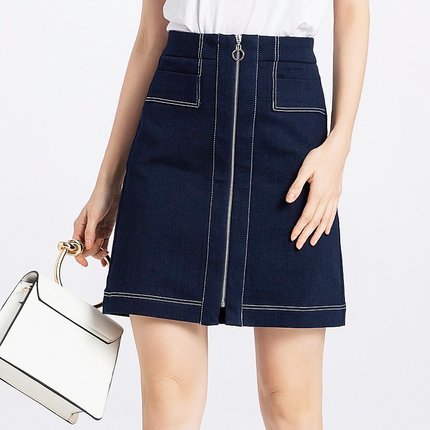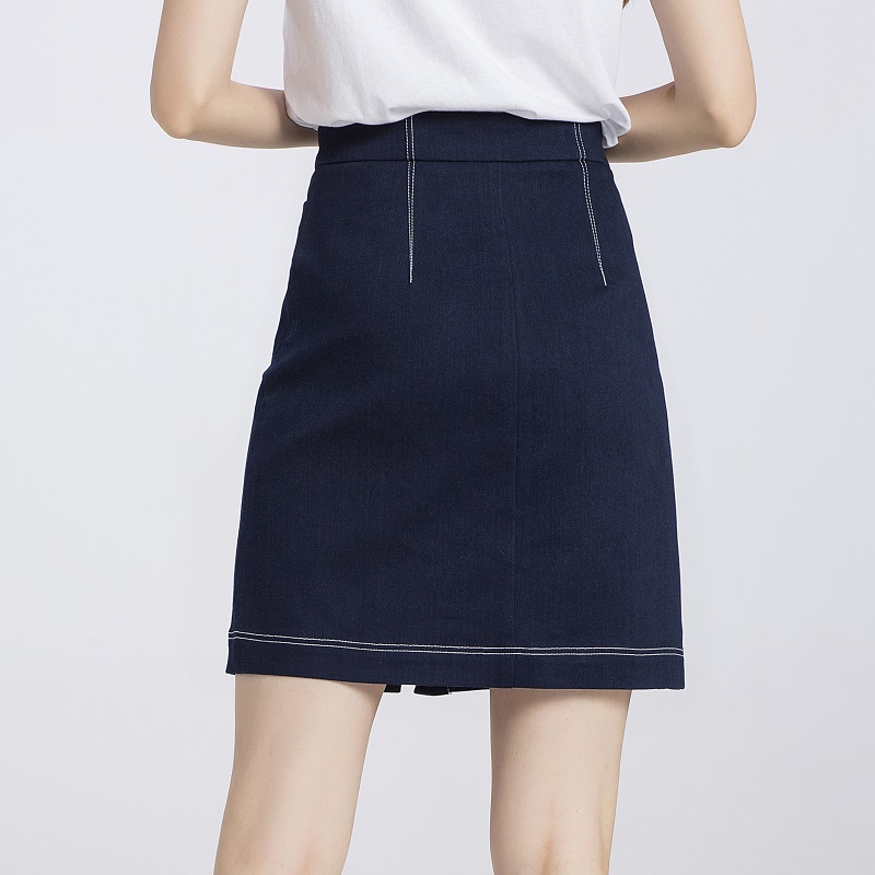 2025秋季款高腰牛仔深蓝色半身裙中长弹力裙子女a字明线包臀显瘦