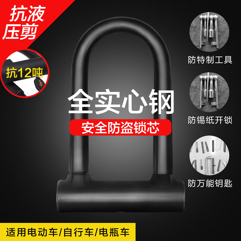 电动车电瓶车锁前轮车轮大锁U形软锁 山地自行车单车专用U型锁具