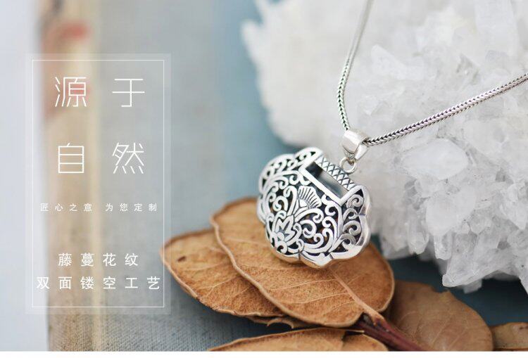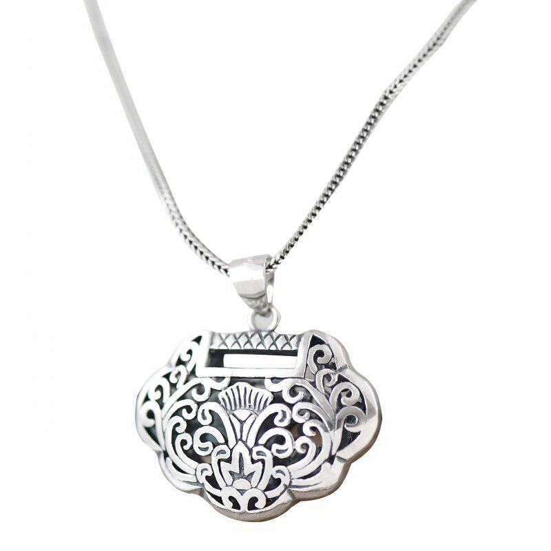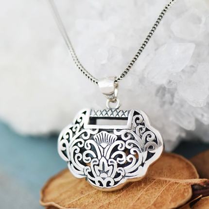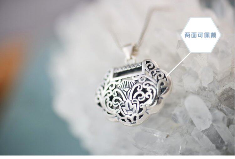 s925纯银女成人长命锁项链小吊坠泰银复古平安锁镂空手工弥藏礼物