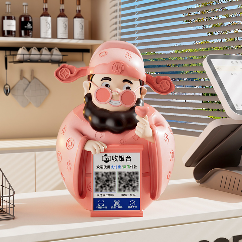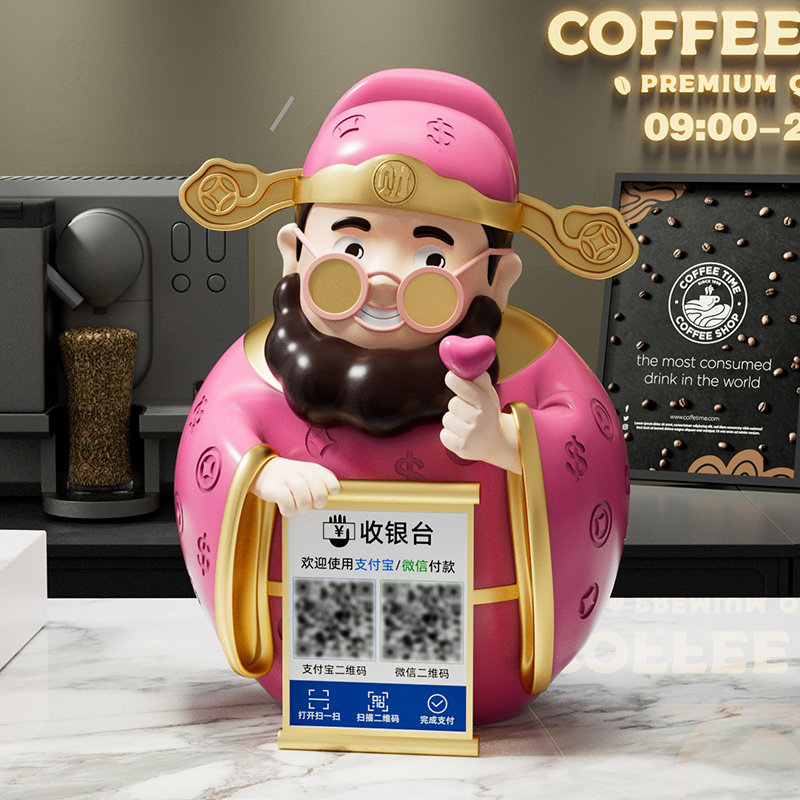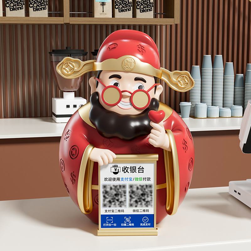 比心财神爷摆件店铺收银台二维码收钱新店开业大吉礼物发财装饰品