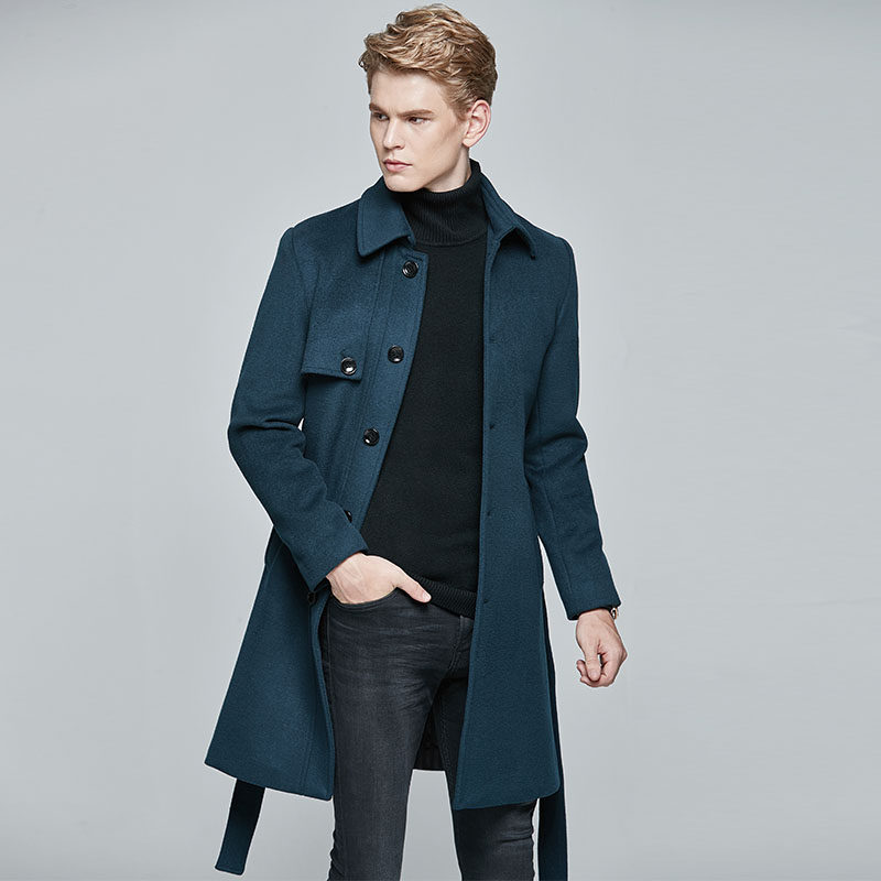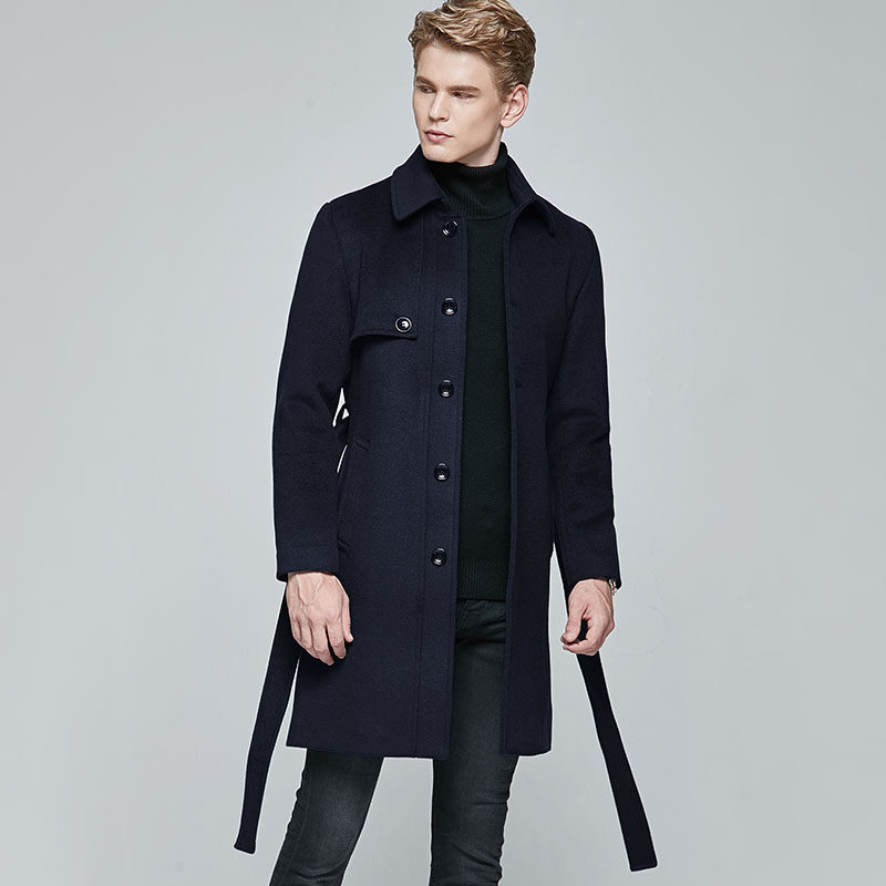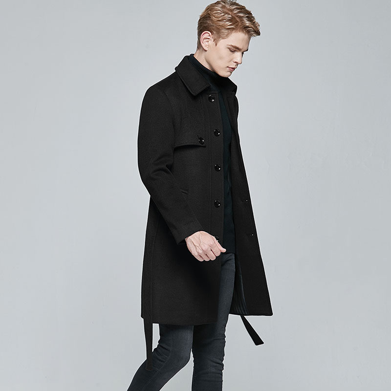 新款秋冬毛呢中长款大衣男修身羊绒羊毛休闲男士呢子外套流行风衣
