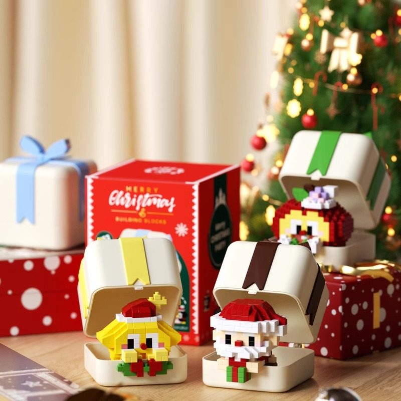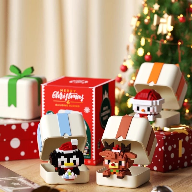 圣诞礼物盒积木圣诞老人微小颗粒益智拼搭玩具圣诞雪人圣诞节礼物