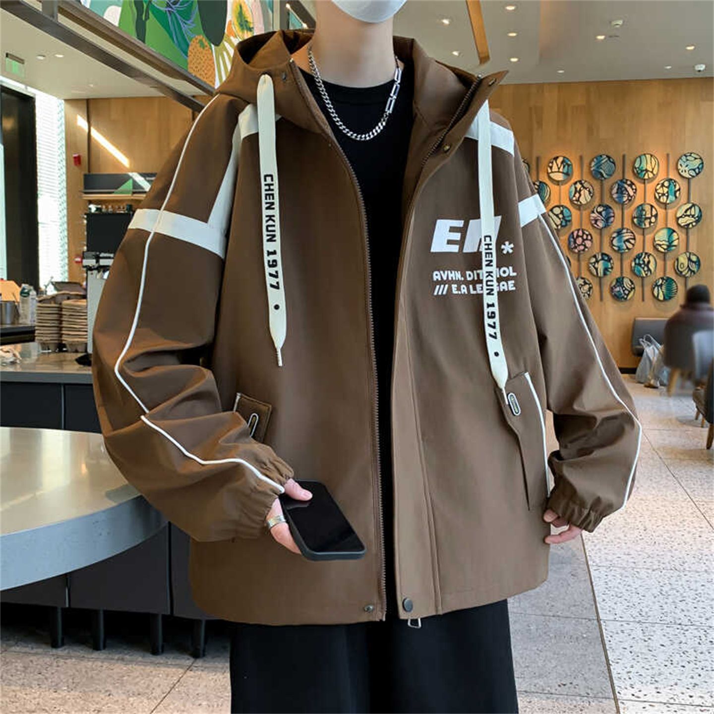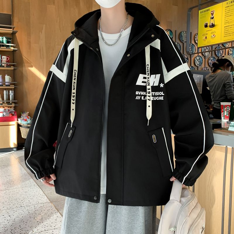 春秋季学生青少年百搭宽松帅气港风连帽休闲透气夹克外套男潮流