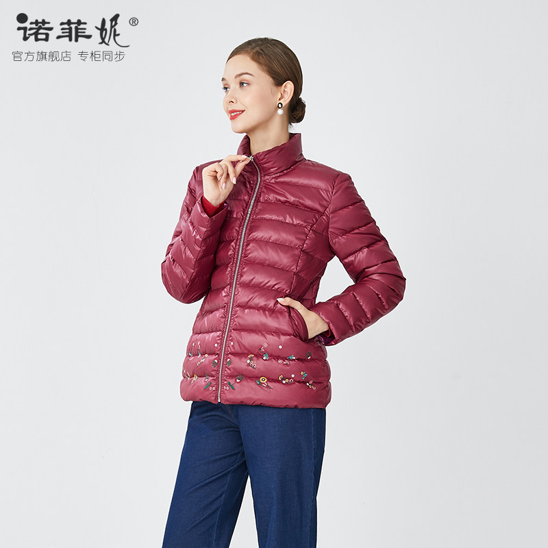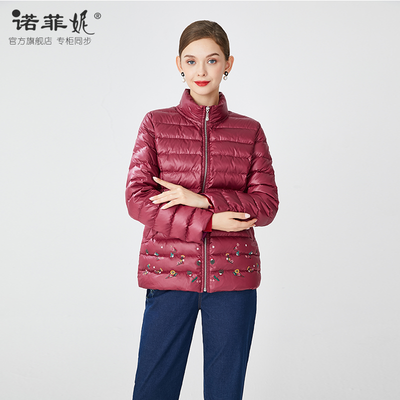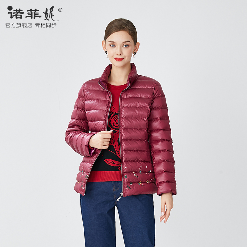 品牌中老年女装冬装新款白鸭绒加厚保暖羽绒服妈妈立领短款外套女