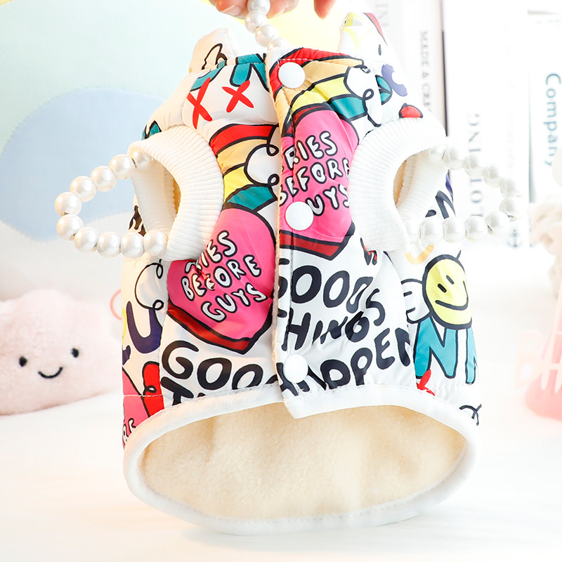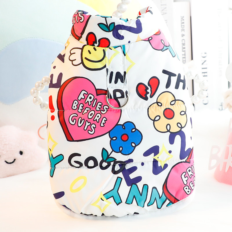 狗狗衣服秋冬装厚款猫咪公主炫彩棉背心可牵引小型犬泰迪宠物5372