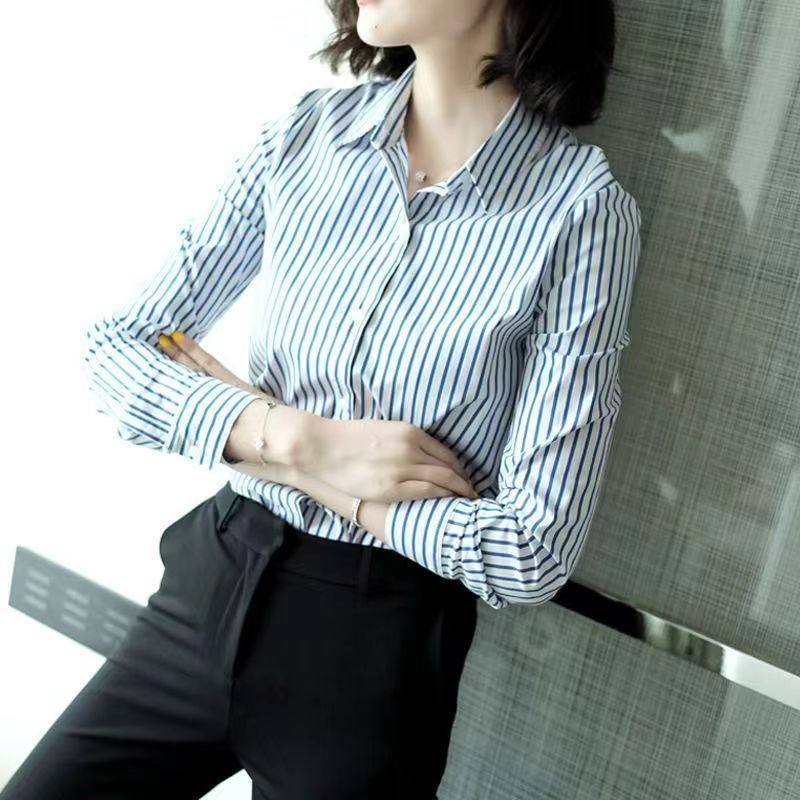 春秋新款条纹衬衫女长袖通勤修身设计感上档次女衬衣百搭洋气上衣