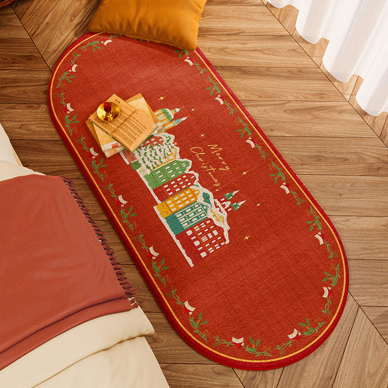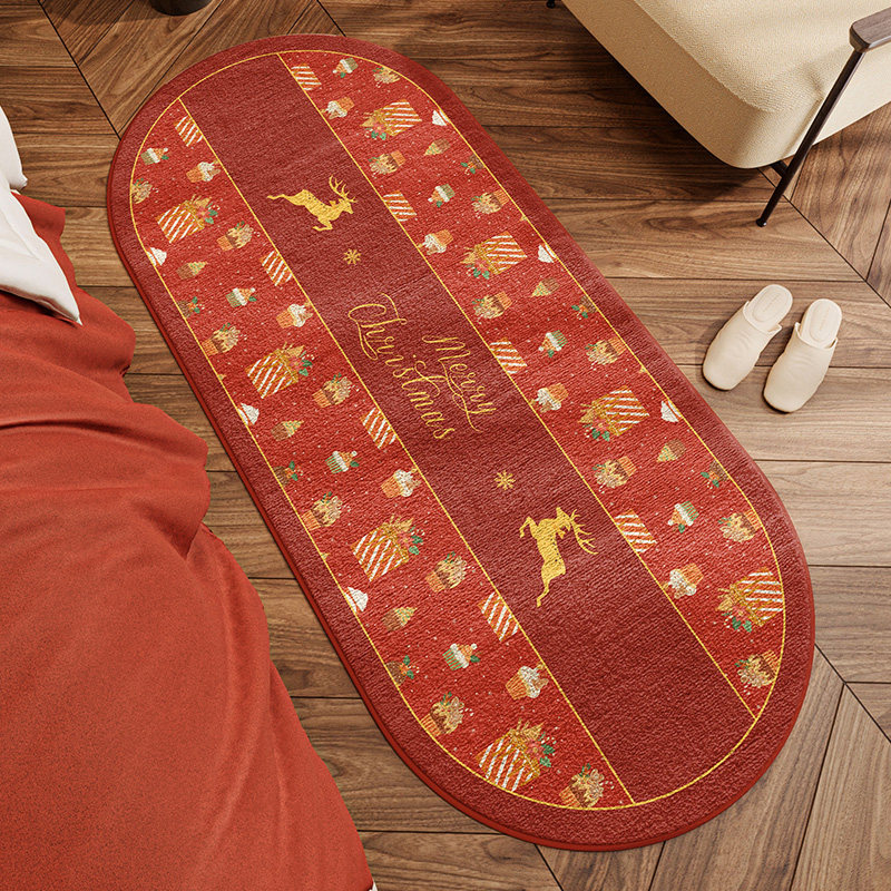 圣诞氛围感床边毯房间卧室地毯新年节日款床前脚垫客厅短毛绒地垫