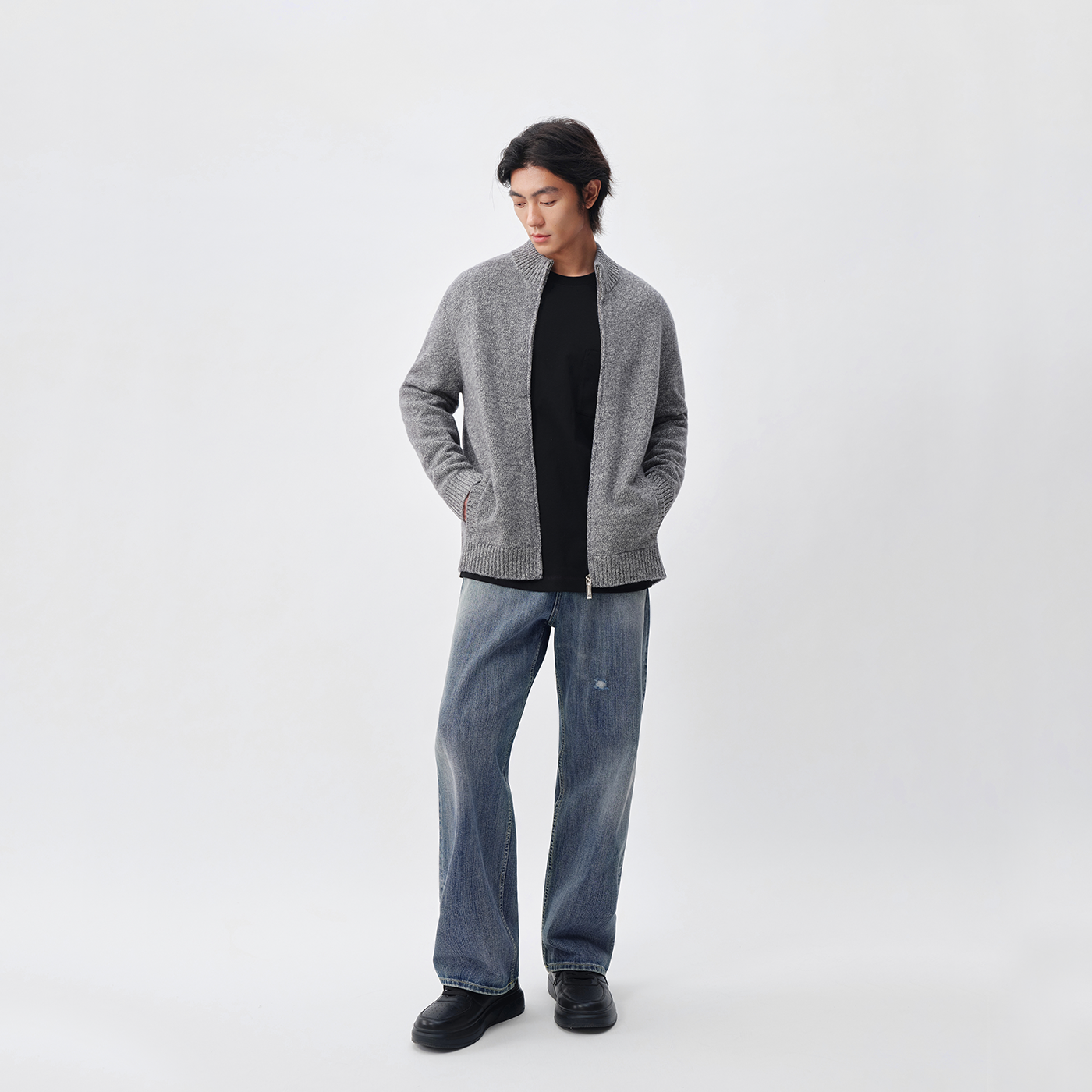 100%绵羊毛立领针织开衫 软糯丰盈 复古花纱 拉链款外套男士毛衣