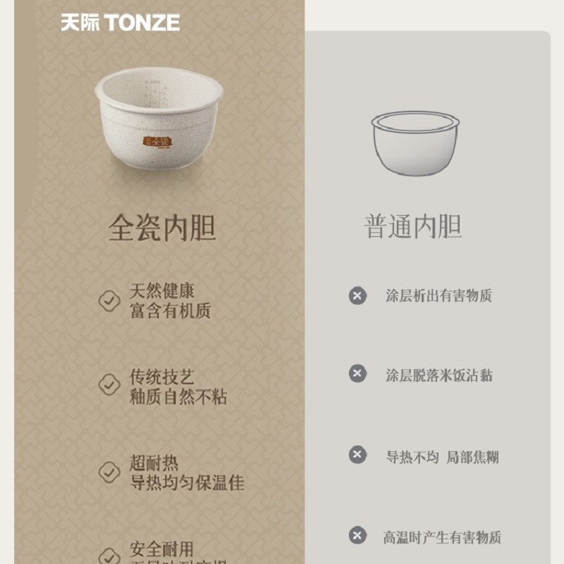 天际进口真陶瓷内胆电饭煲1u-6人智能煮饭锅0涂层2-3-4升不粘锅