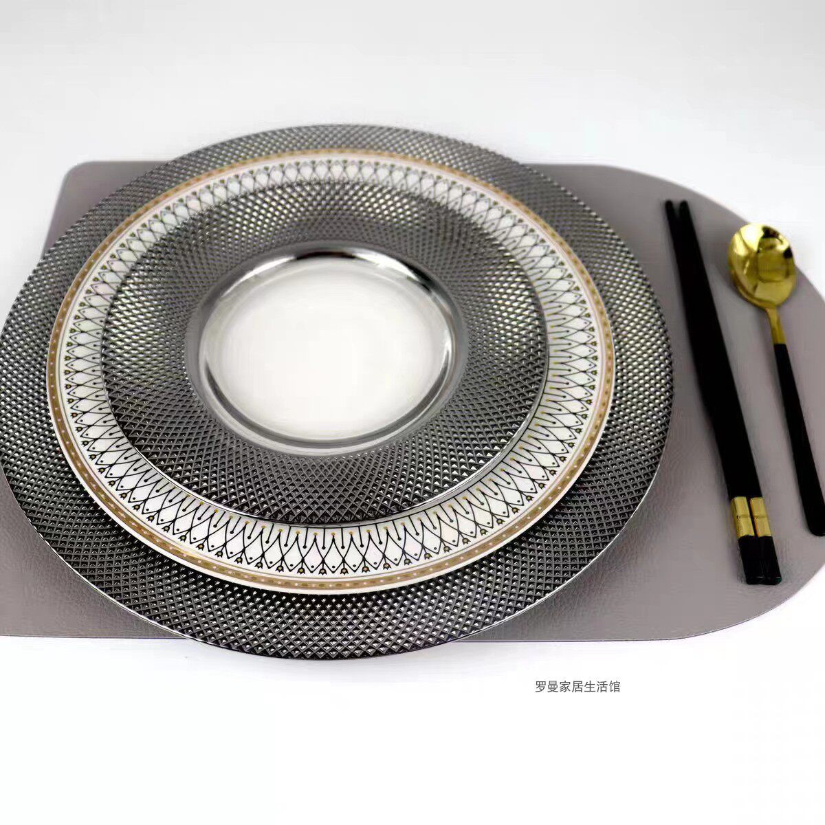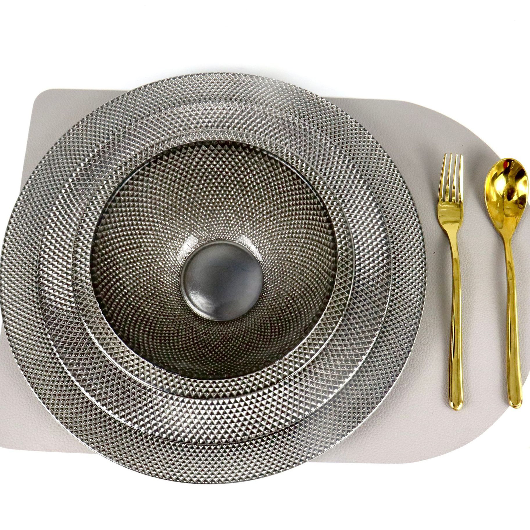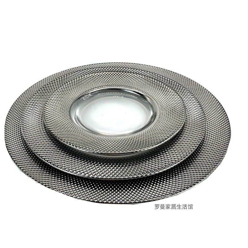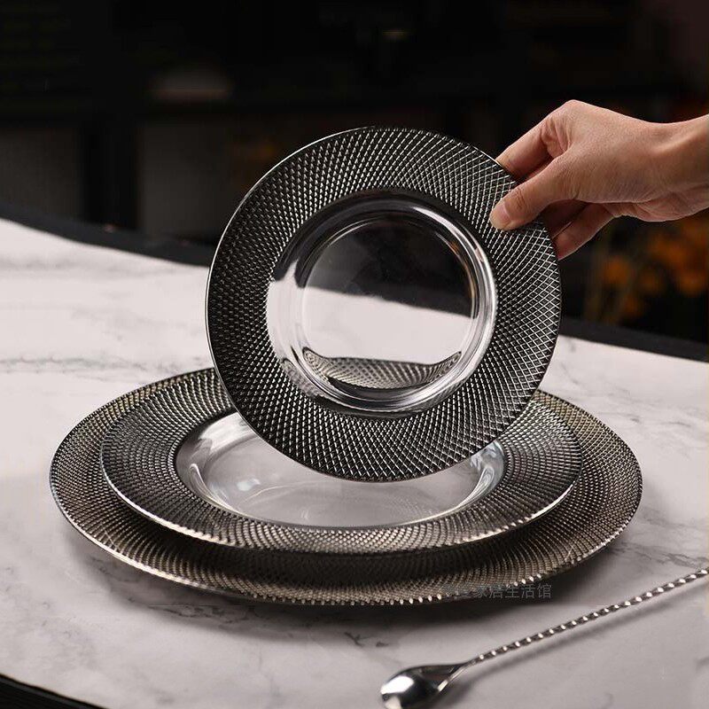 北欧银灰水果盘轻奢电镀网格玻璃餐盘西餐盘牛排盘垫酒店餐桌摆台