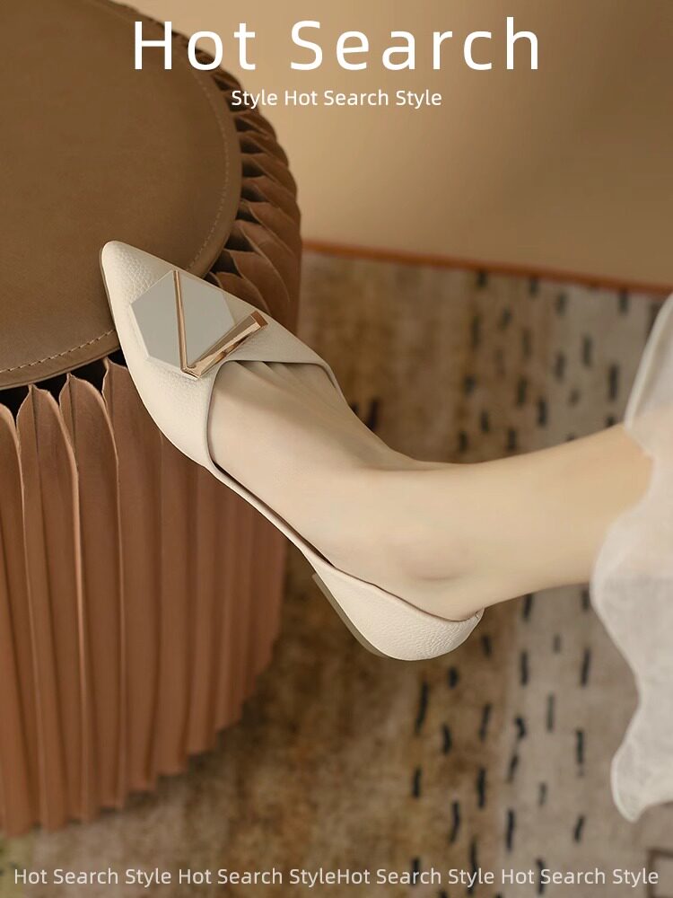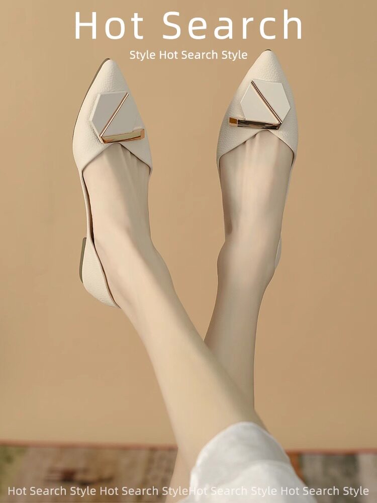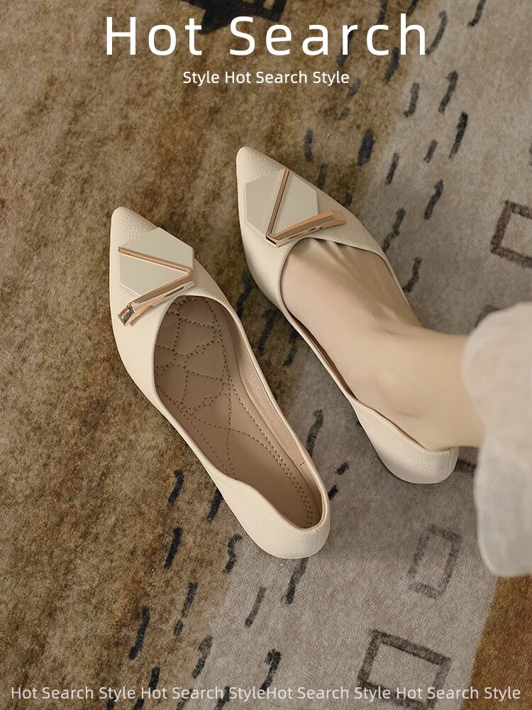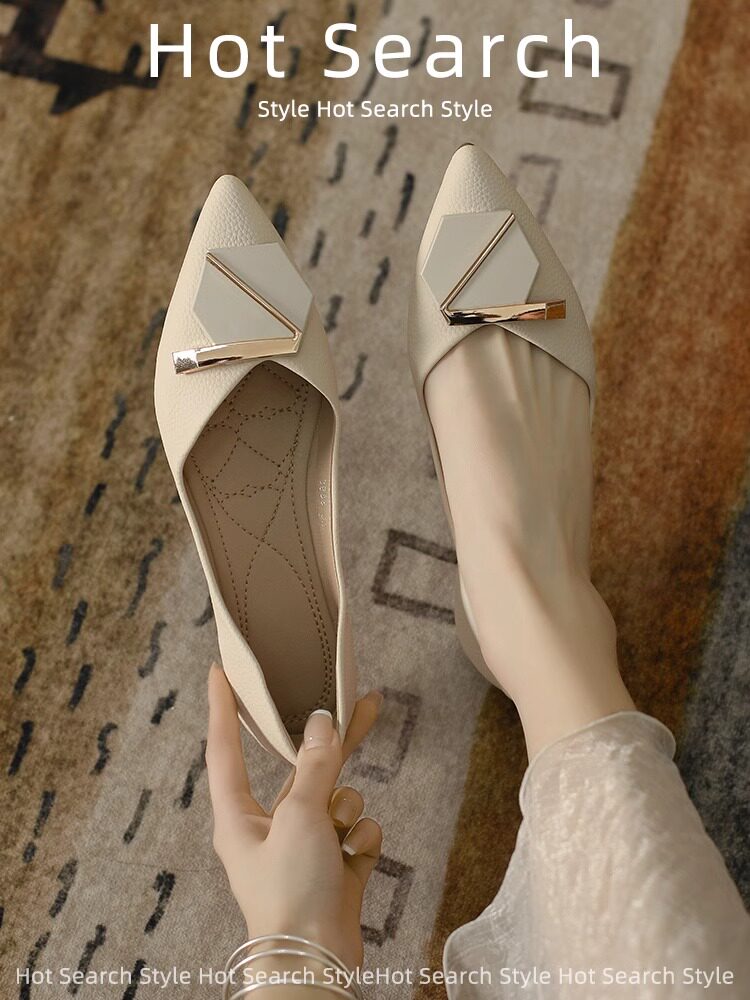 品牌真皮平底单鞋女2025新款晚晚鞋时尚尖头软底仙女浅口豆豆鞋子