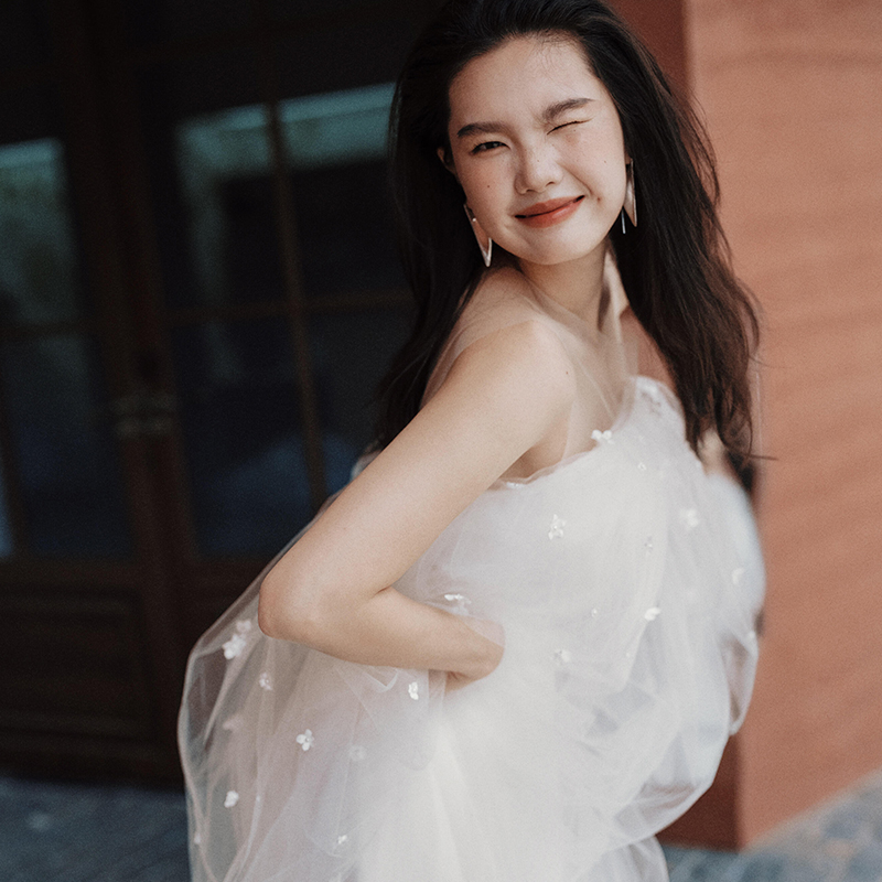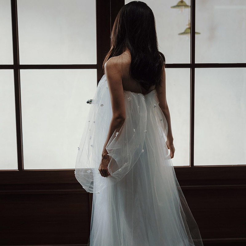2025新款法式高级感森系白色抹胸订婚结婚轻婚纱晨袍敬酒服礼服裙
