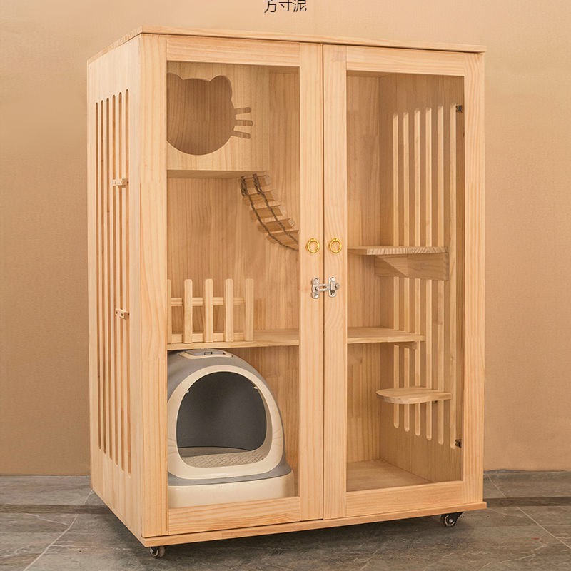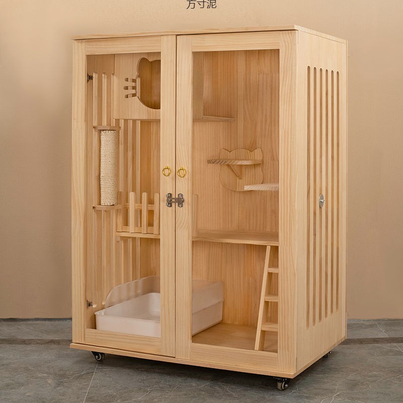 热销猫笼子木质猫咪双层别墅实木房子柜别墅三层猫窝猫爬架舍一件