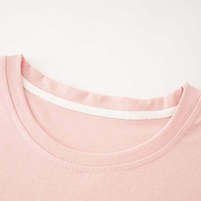 纯棉睡衣女士春秋季上衣长袖T恤粉色圆领宽松舒适休闲外穿家居服