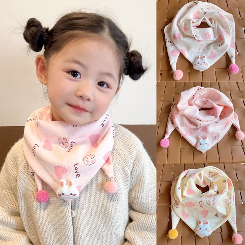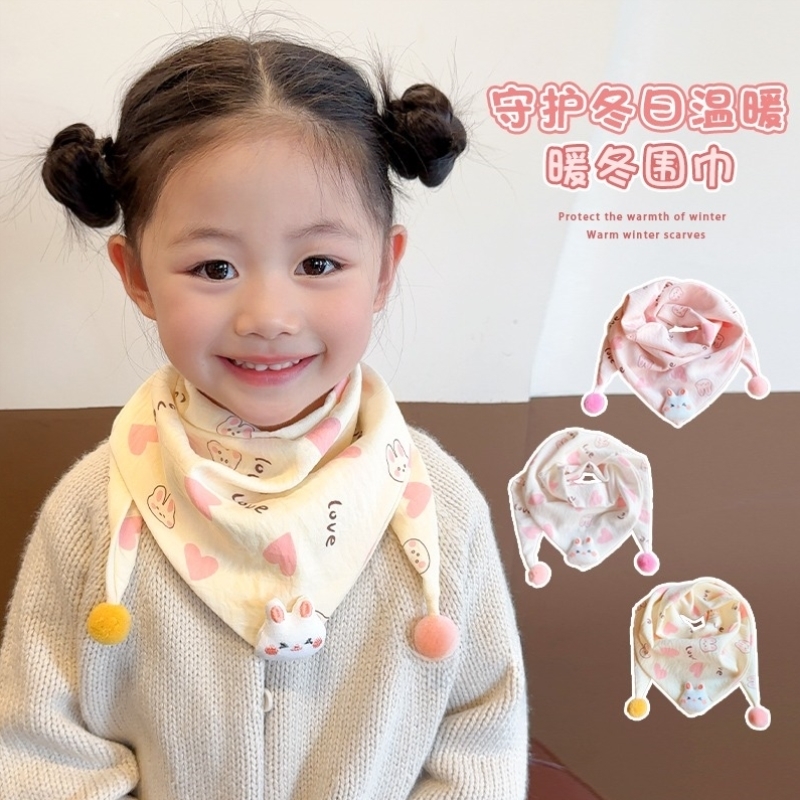儿童秋冬天小兔围巾宝宝棉质亲肤围脖冬季保暖女童新款防风三角巾
