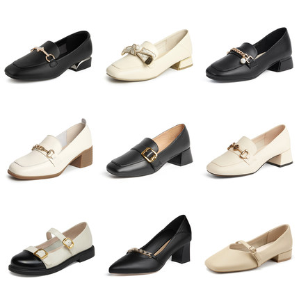 卓诗尼春秋季新款女士韩版单鞋子深口平跟百搭休闲时装乐福鞋