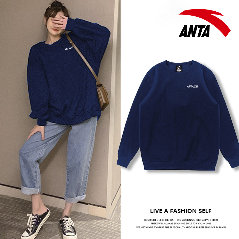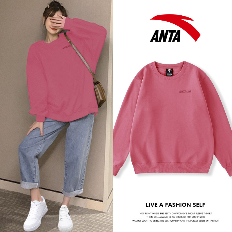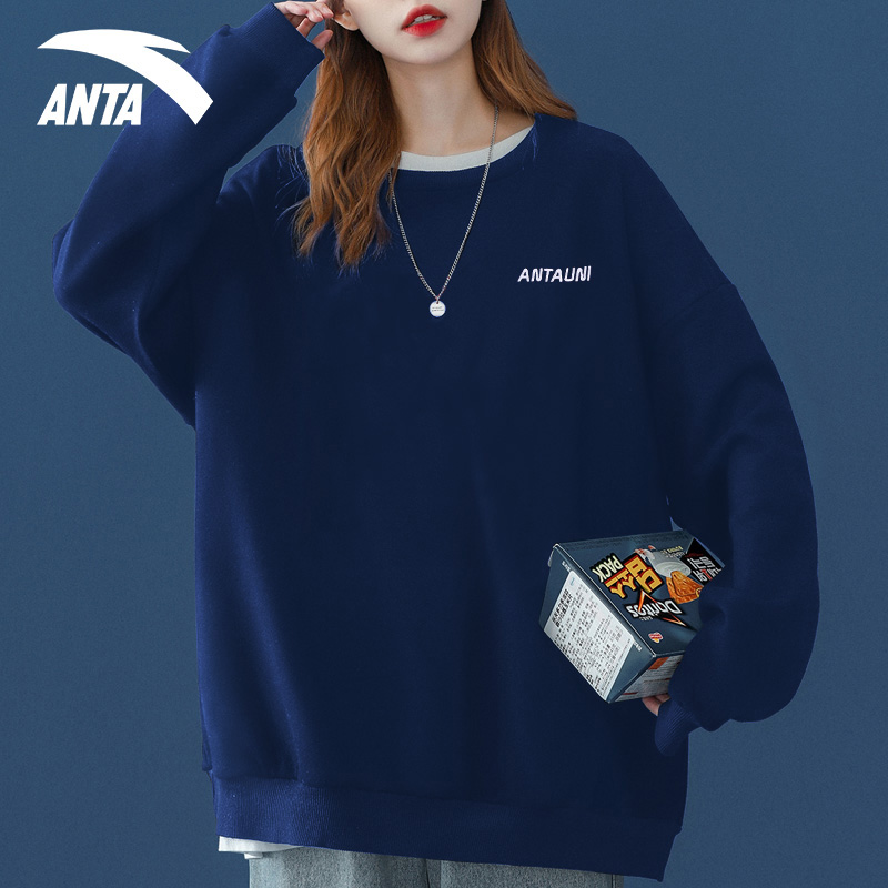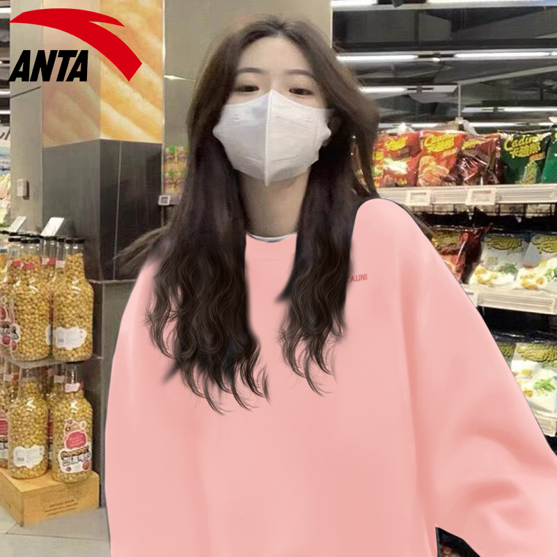 安踏卫衣女装官网旗舰2025春季新款宽松圆领无帽套头上衣长袖t恤