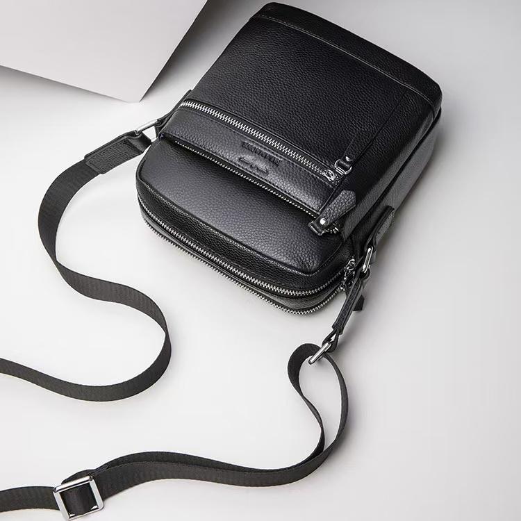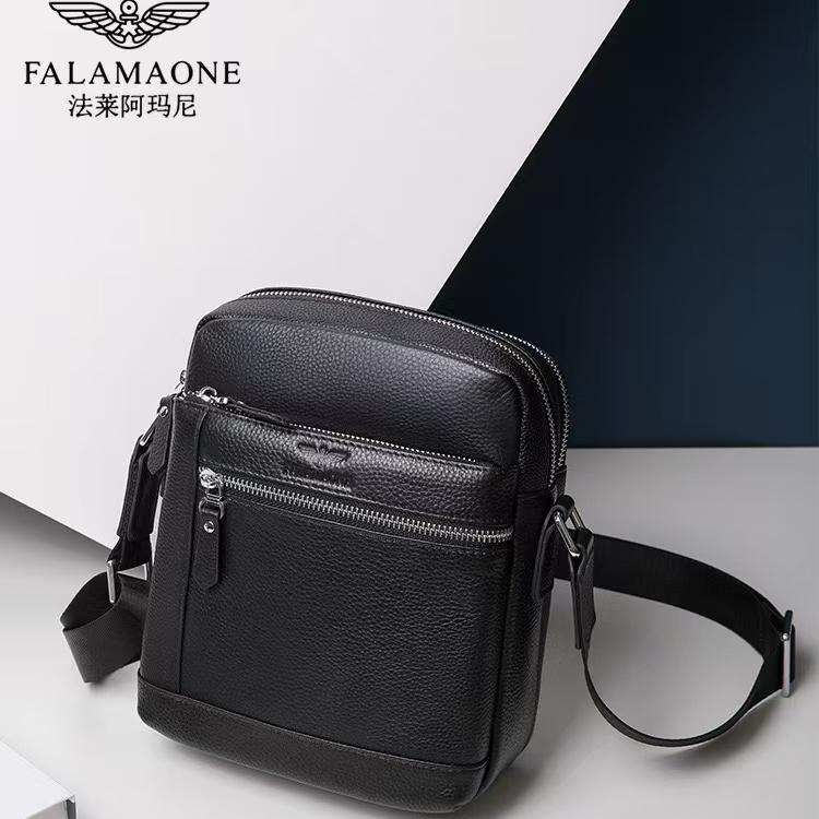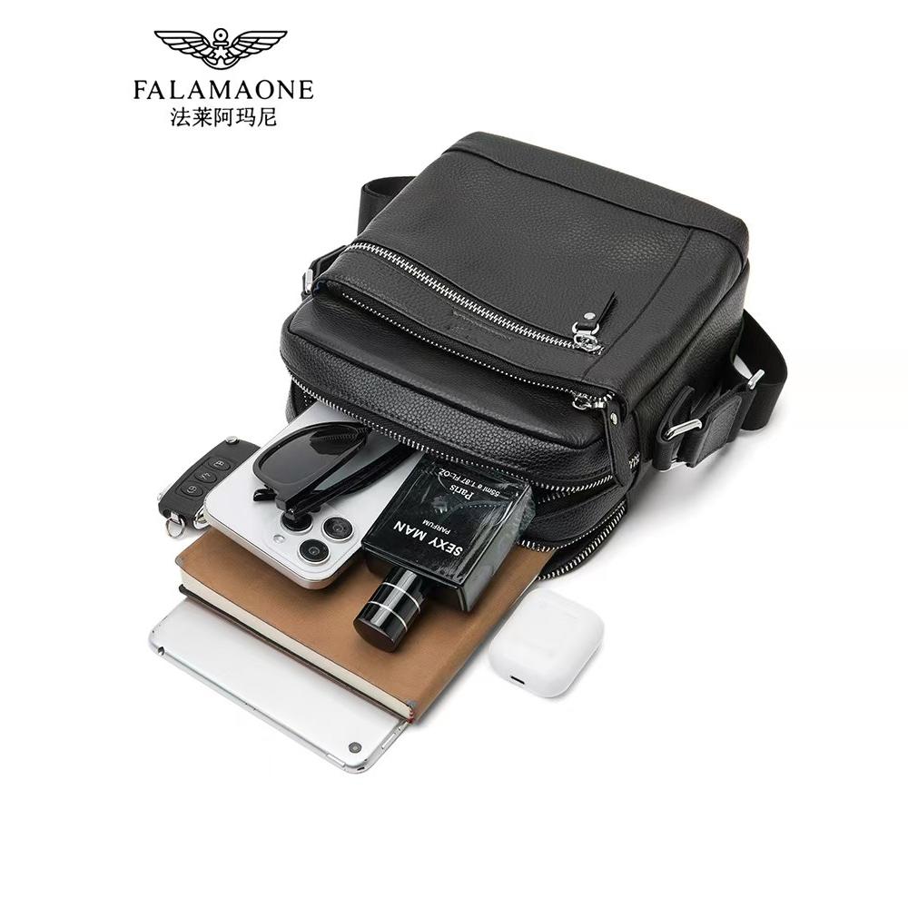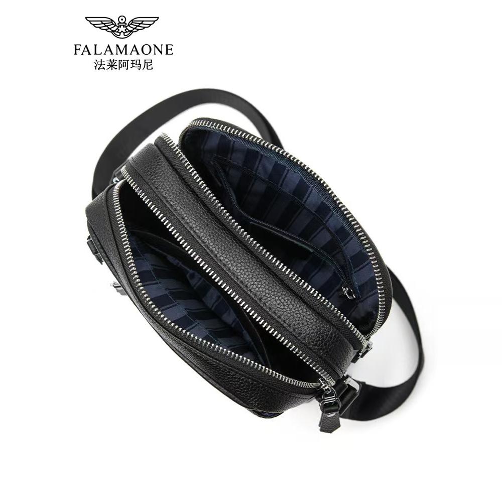 法莱阿玛尼黑色单肩包男士真皮包休闲时尚通勤小背包百搭牛皮包包