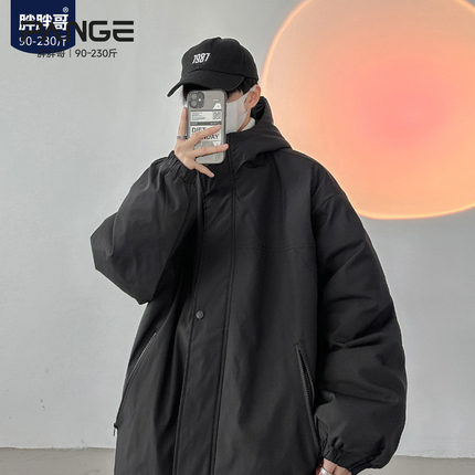 胖胖哥棉服男士冬季新款宽松大码连帽棉衣加厚夹克冲锋衣羽绒外套