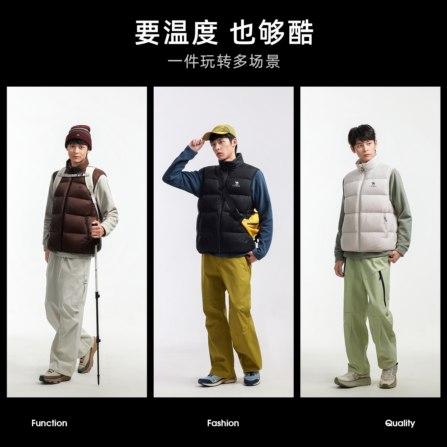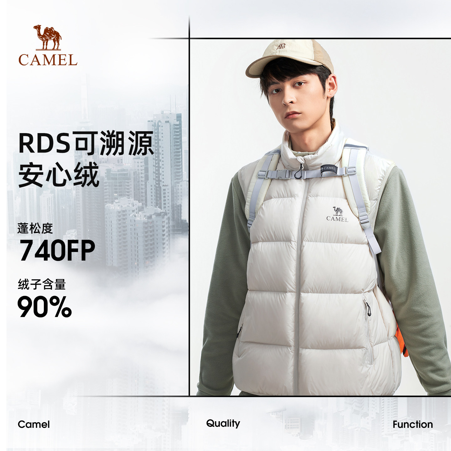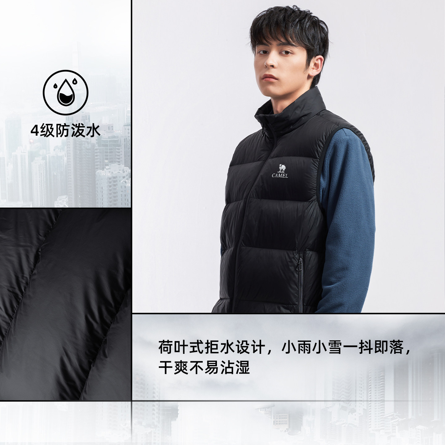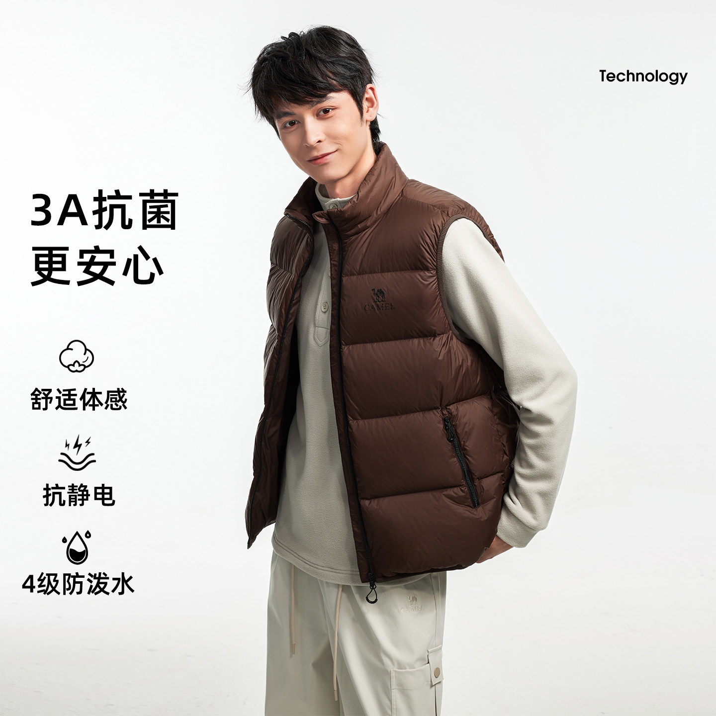 骆驼户外面包马甲羽绒服女款男款抗菌抗静电防水鸭绒羽绒马甲外套