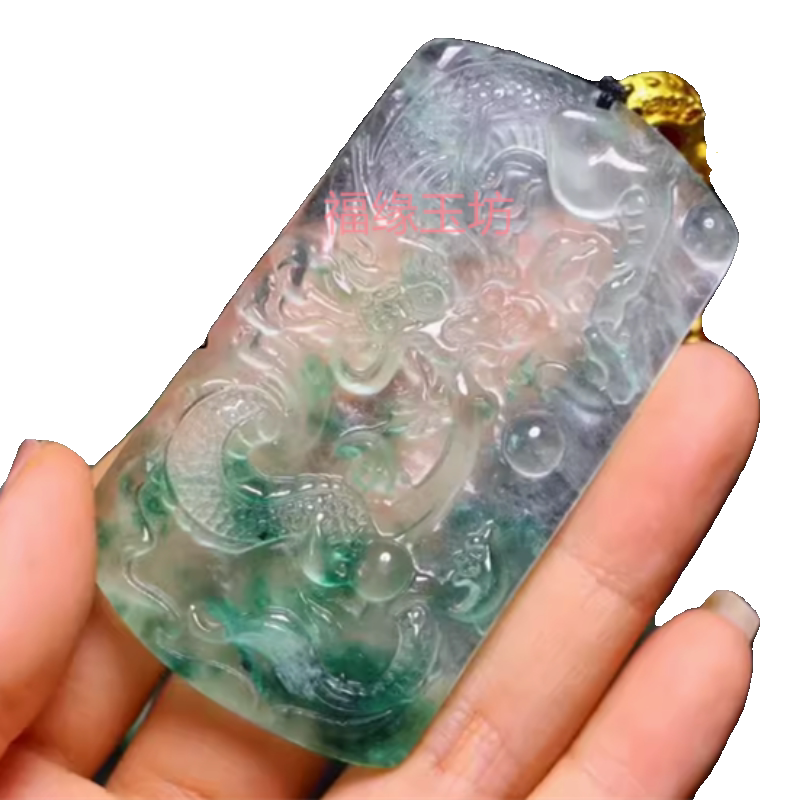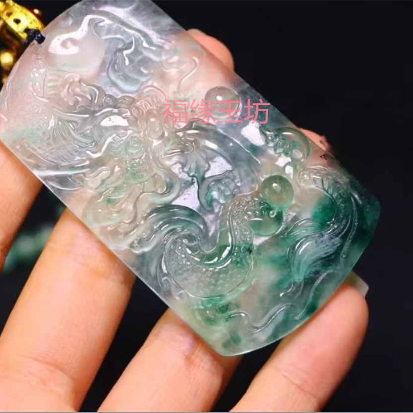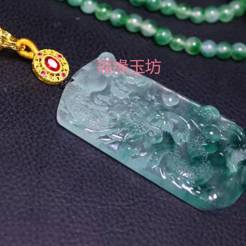 吊坠翡翠色石英岩玉冰种飘花玉石生肖龙牌子男女独龙玉石项链挂件