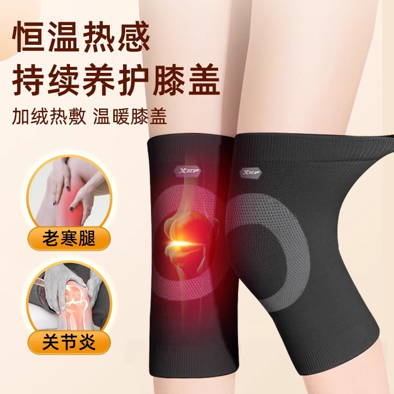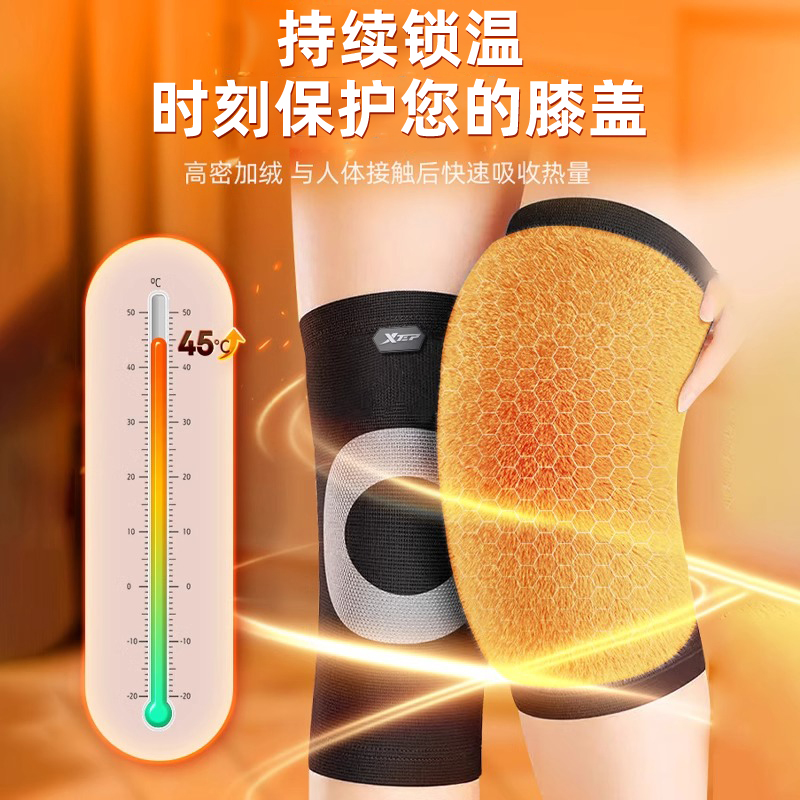 特步保暖护膝老寒腿男女士加绒中老年人关节运动冬季防寒膝盖护具
